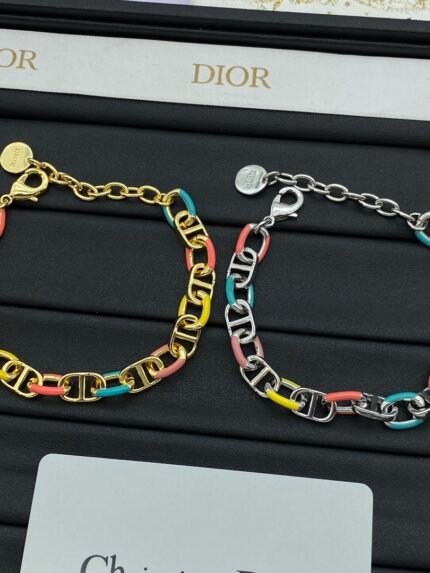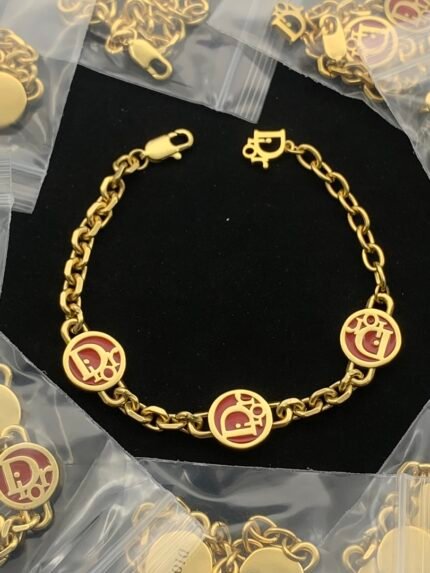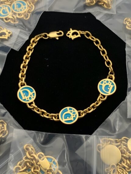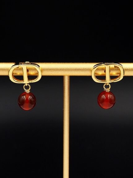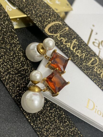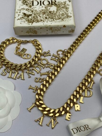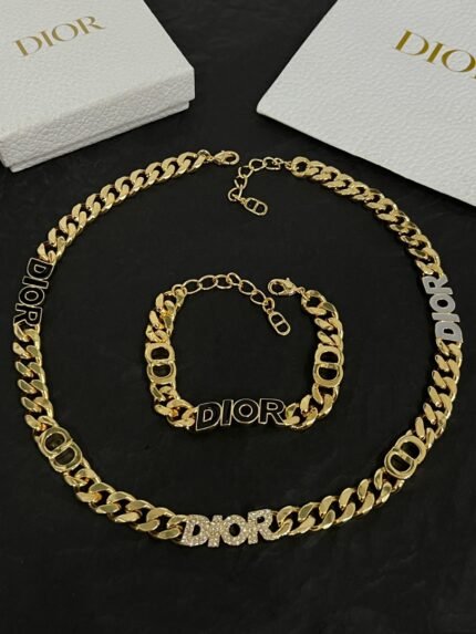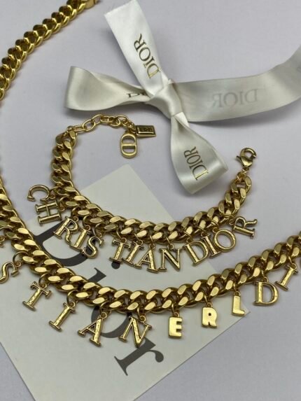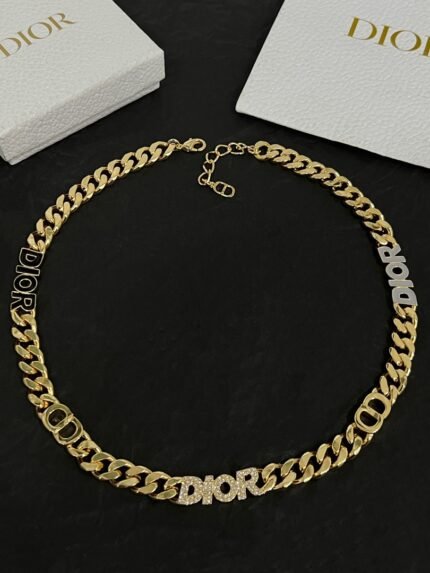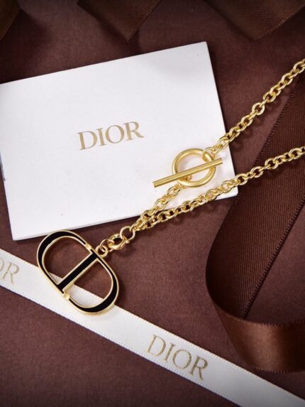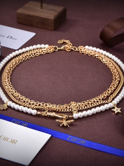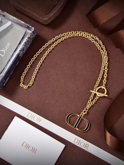 DIOR Smooth CD Logo Size Black Pearl to Pearl Gold Bead Necklace