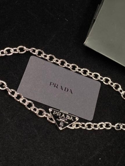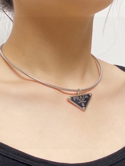 PRADA Triangle Metallic Texture Chain Small Triangle Thick Necklace