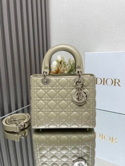 Top Original【 Lady Dior My ABC 】 “Pearl Powder”/Five grid sheepskin/