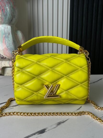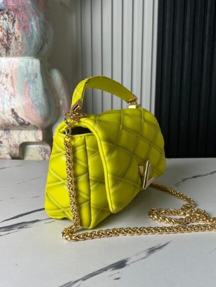 Lemon Yellow Full Leather Ling Grid Chain Bag Series GO-14 Teist Medium Handbag