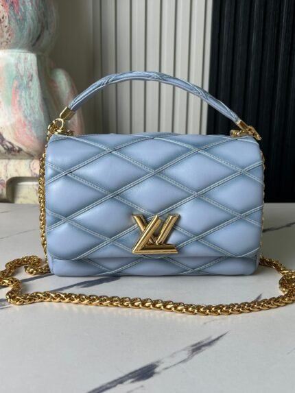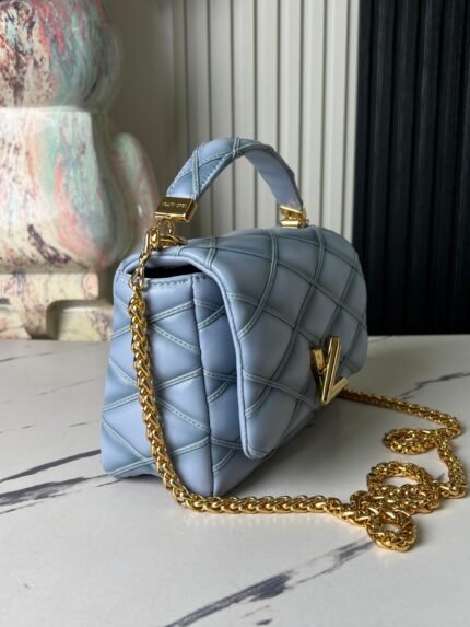 Light Blue Full Leather Ling Grid Chain Bag Series GO-14 Teist Medium Handbag