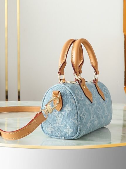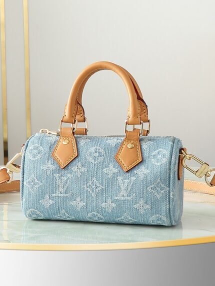 light blue denim denim chip version pillow bag Speedy series NANO SPEEDY handbag