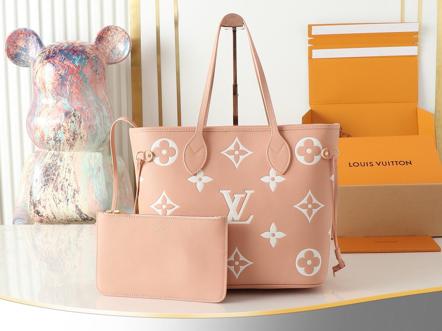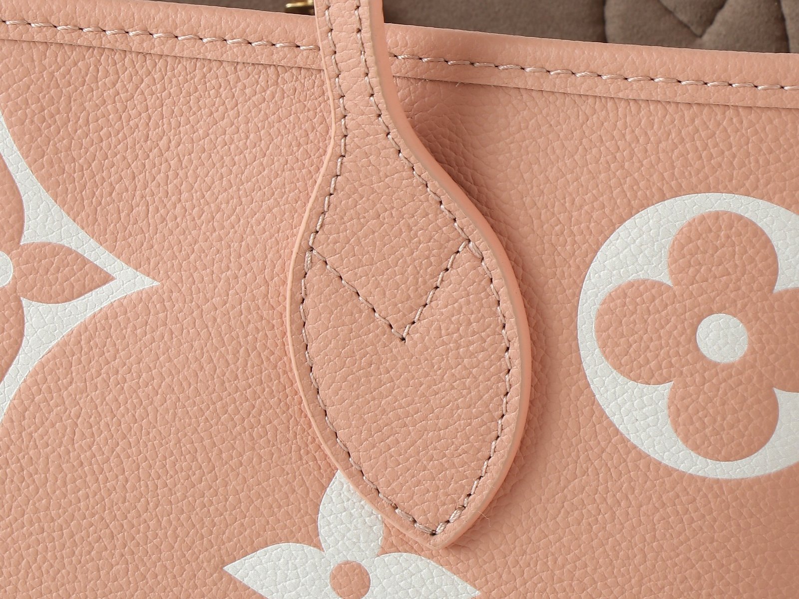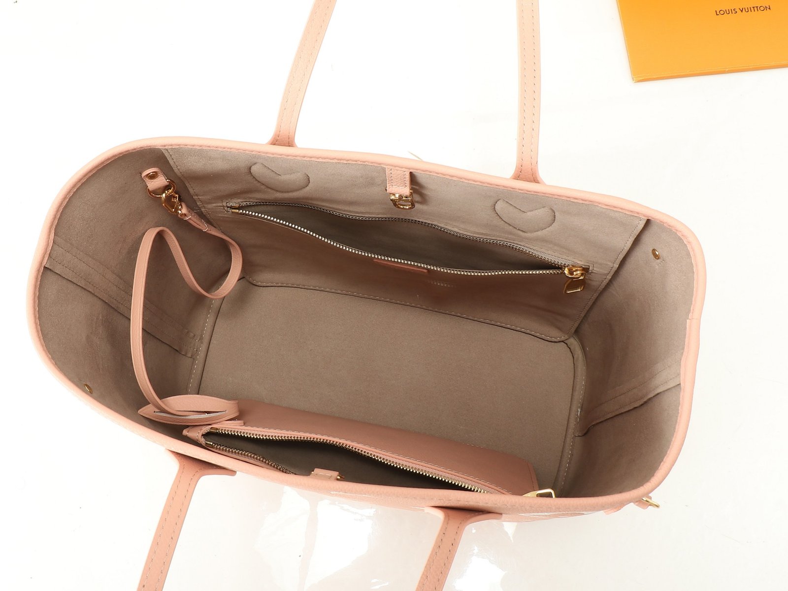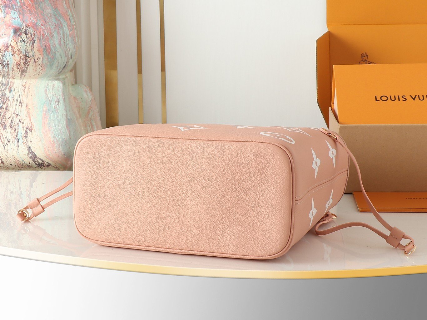 【 Exclusive Top Original Photo 】 M45685 M45686 Pink Silk Screen Full Leather Embossed Shopping Bag Series Neverfull Medium Handbag This Neverfull Medium Handbag is made of Monogram Empreinte grain leather, paired with microfiber lining and metal parts. Tighten or loosen the side straps, and switch between a neat or relaxed style as you wish. The zipper inner pocket can be removed and used separately. Detailed features 31 x 28 x 14 centimeters (length x height x width)