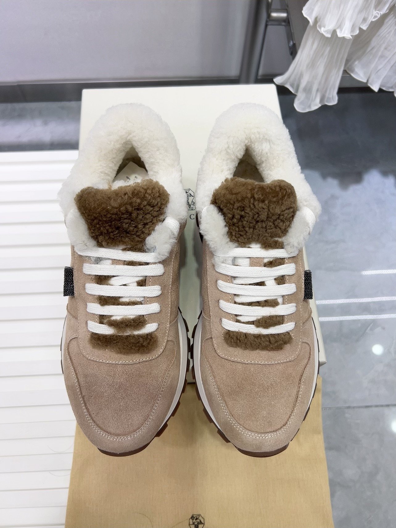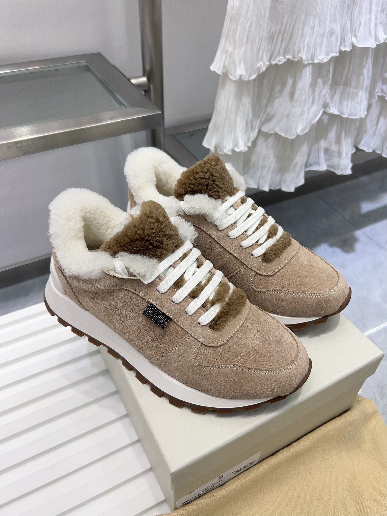 2024 Winter New Product, Brenellocucinelli BC New Autumn/Winter New Product Women’s Striped Suede Casual Lamb Wool Sports Shoes (Decorative Beaded Sports Shoes) Style Number: 25G27P