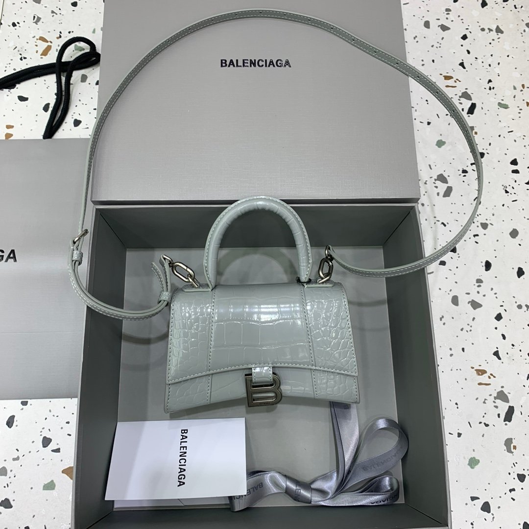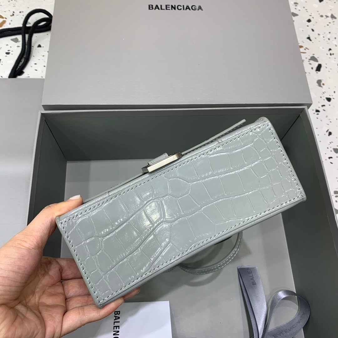 [Mini Number] ♀ Original Balencia Paris home, this season’s heavyweight “Crocodile Dark Grey” hourglass bag, with a unique iconic curved shape that is highly recognizable, eye-catching and super cool. The appearance presents a semi-circular shape with a metal B-shaped pull ring hanging up ✨ The leather texture is also very touching and has a tone. Daily necessities are still carefully selected, versatile and trendy. This year, this Parisian family hourglass bag will definitely go viral. It is elegant, delicate and personalized, eye-catching at a glance and does not want to be noticed ⚠ It’s so difficult, even carrying a crossbody looks explosive. It is definitely the favorite of goddesses, and of course, I also love shi! Cool and cute is to this effect. Capacity test: mobile phone, change purse, powder, lipstick, power bank, key, small package of paper towels, all can be easily loaded, supporting inspection. Size: 19-8-21cm ⚠