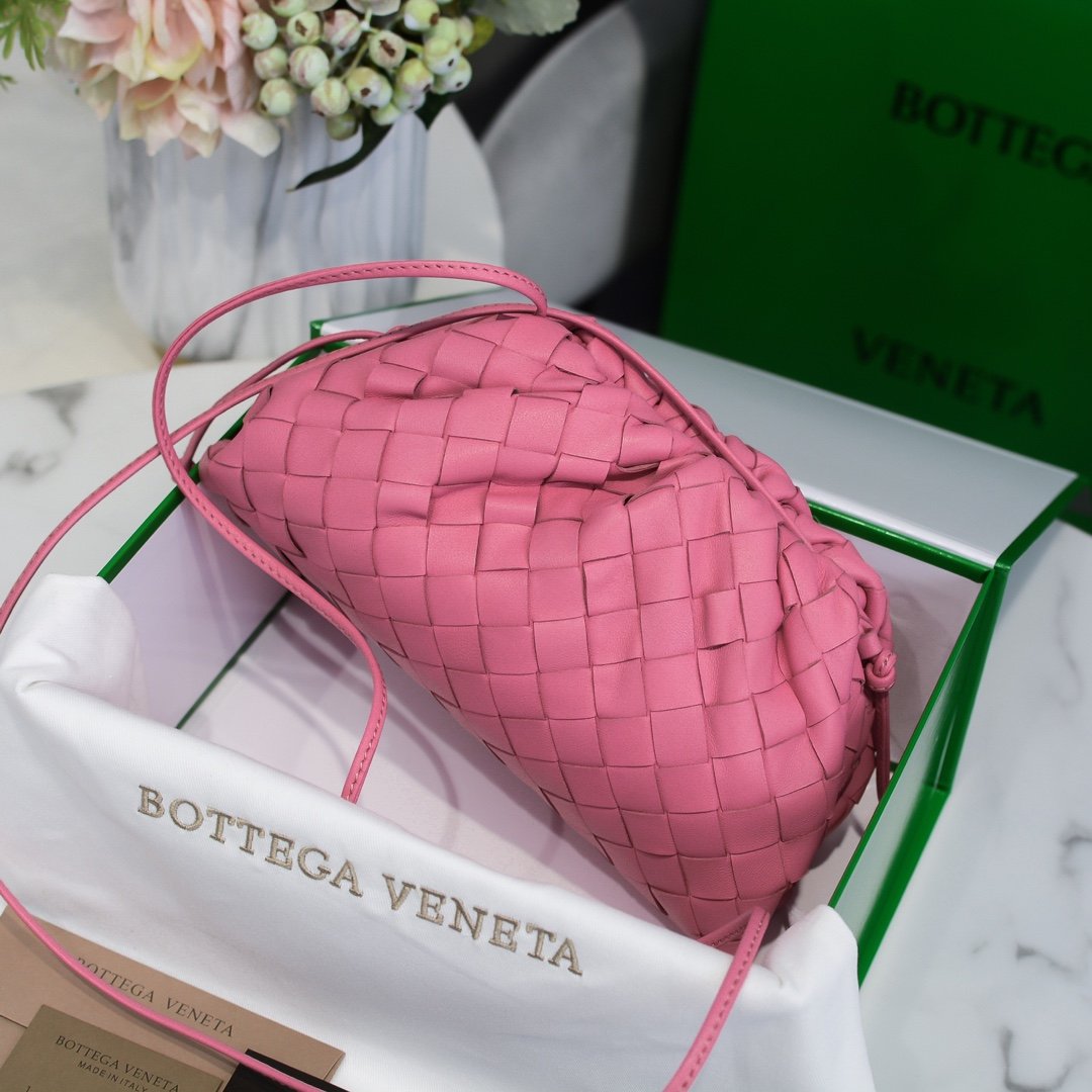 Small Clouds Large Grid # Pink Wide woven small size~Super popular cloud bag ☁️ The first series designed by Celine’s former designer Daniel Lee after taking over weaving looks very high-end overall! The new series The Pouch handbag is simple, low-key, and elegant, with irresistible colors. It is fashionable and stylish to wear, starting from the cloud bag. Small size sizi: 22 * 12 * 5cm