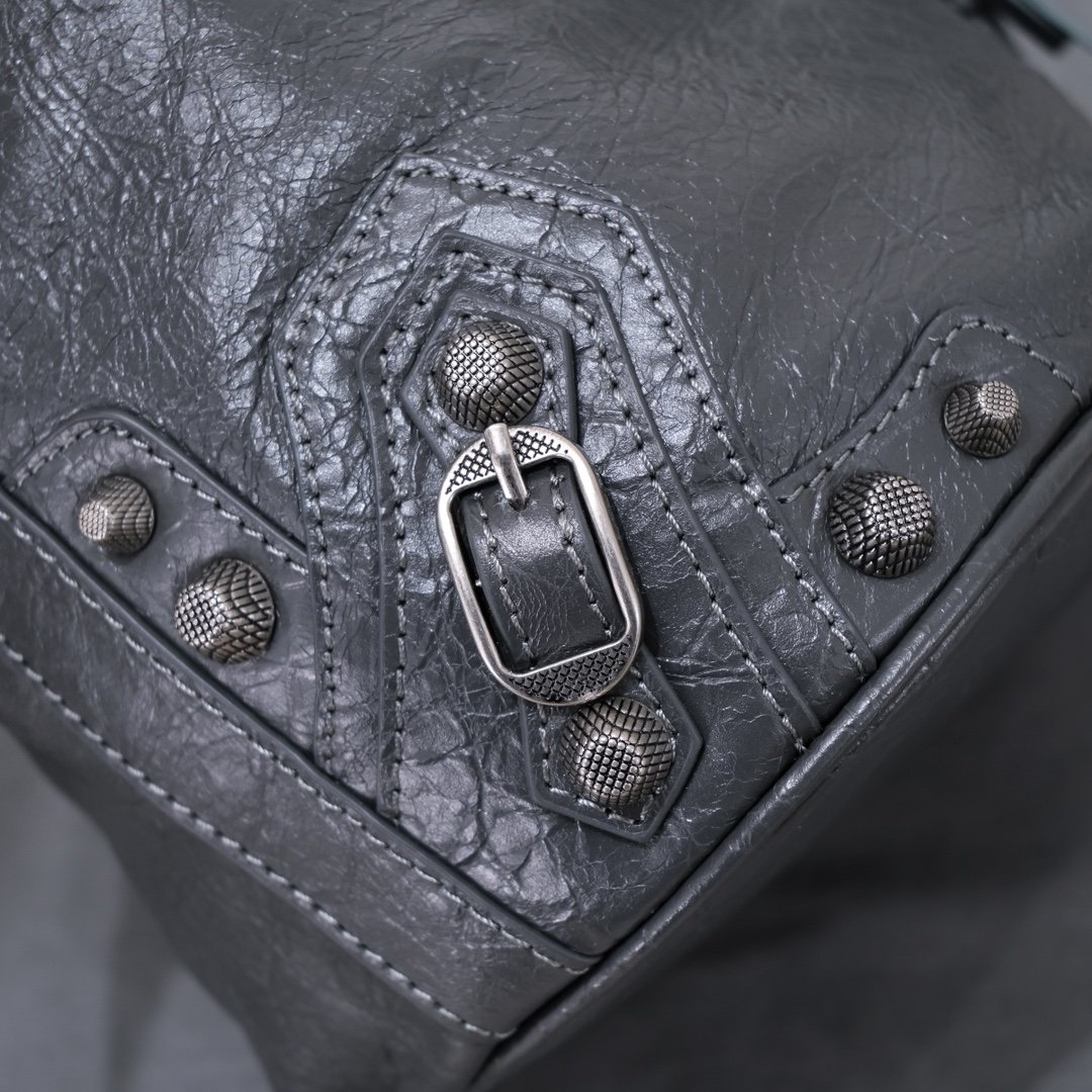new small water bucket machine bag, imported bursting sheepskin, color: dark gray, size: 15 * 17 * 19 Balenciag α’s latest LeCagole bucket motorcycle bag in Paris is equipped with a heart-shaped small mirror, and the small truck bag is really cool