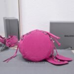 new small water bucket machine bag, imported bursting sheepskin, color: rose red, size: 15 * 17 * 19 Balenciag α’s latest LeCagole bucket motorcycle bag in Paris is equipped with a heart-shaped small mirror, and the small truck bag is really cool
