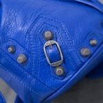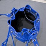 new small water bucket machine bag, imported explosive sheepskin, color: electric blue, size: 15 * 17 * 19 Balenciag α’s latest LeCagole bucket motorcycle bag in Paris is equipped with a heart-shaped small mirror, and the small truck bag is really cool