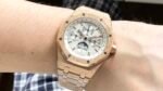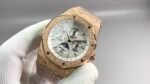 AP Audemars Piguet Royal Oak Frost Gold Edition, 41mm Steel King “Audemars Piguet 26574 Series (Frost Gold Customized Edition), the heaviest watch strap for steel band watches, TWF factory uses the original watch strap to mold the fine brushed pattern of the strap without sharp cuts, and the thickness and joints of the strap are consistent with the original, paying meticulous attention to details The active buffer design at the connection head of the watch strap is consistent with the genuine product, making it more comfortable to wear close to the wrist. The switch design, texture, and carving process of the watch buckle are consistent with the genuine product. TWF factory restores the original literal workmanship, color details, and genuine product together without any flaws. The core is the soul of the entire watch and the key to identifying authenticity. It perfectly replicates the original Cal.5134 movement, with precise timekeeping and solid pointer center axis details, consistent with the original product. The pointer polishing makes the pointer without burrs!