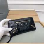 Balenciaga Black [Real Shot – Exclusive Background] Classic Retro Zipper Long Burst Pattern Sheepskin Motorcycle Wallet [Love] [Love] [Love] Smiling Zipper Multi Layer Card Bag with 12 Card Slot Inner