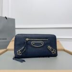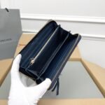 Balenciaga Blue [Actual Photo – Exclusive Background] Classic Retro Zipper Long Sheepskin Motorcycle Wallet [Love] [Love] [Love] Smiling Zipper Multi layer Card Bag with 12 Card Slot Inner