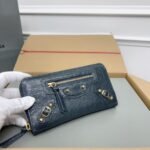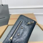 Balenciaga Grey [Actual Photo – Exclusive Background] Classic Retro Zipper Long Burst Pattern Sheepskin Motorcycle Wallet [Love] [Love] [Love] Smiling Zipper Multi layer Card Bag with 12 Card Slot Inner