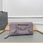 Balenciaga Light Purple [Actual Photo – Exclusive Background] Classic Retro Zipper Long Sheepskin Motorcycle Wallet [Love] [Love] [Love] Smiling Zipper Multi layer Card Bag with 12 Card Slot Inner