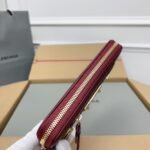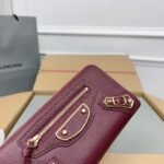 Balenciaga Wine Red [Actual Photo – Exclusive Background] Classic Retro Zipper Long Sheepskin Motorcycle Wallet [Love] [Love] [Love] Smiling Zipper Multi layer Card Bag with 12 Card Slot Inner