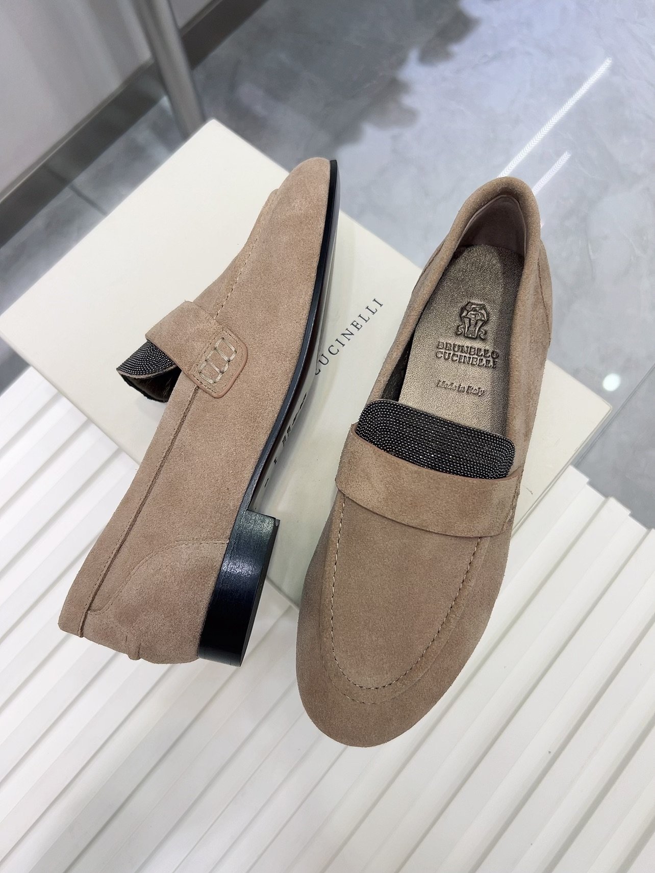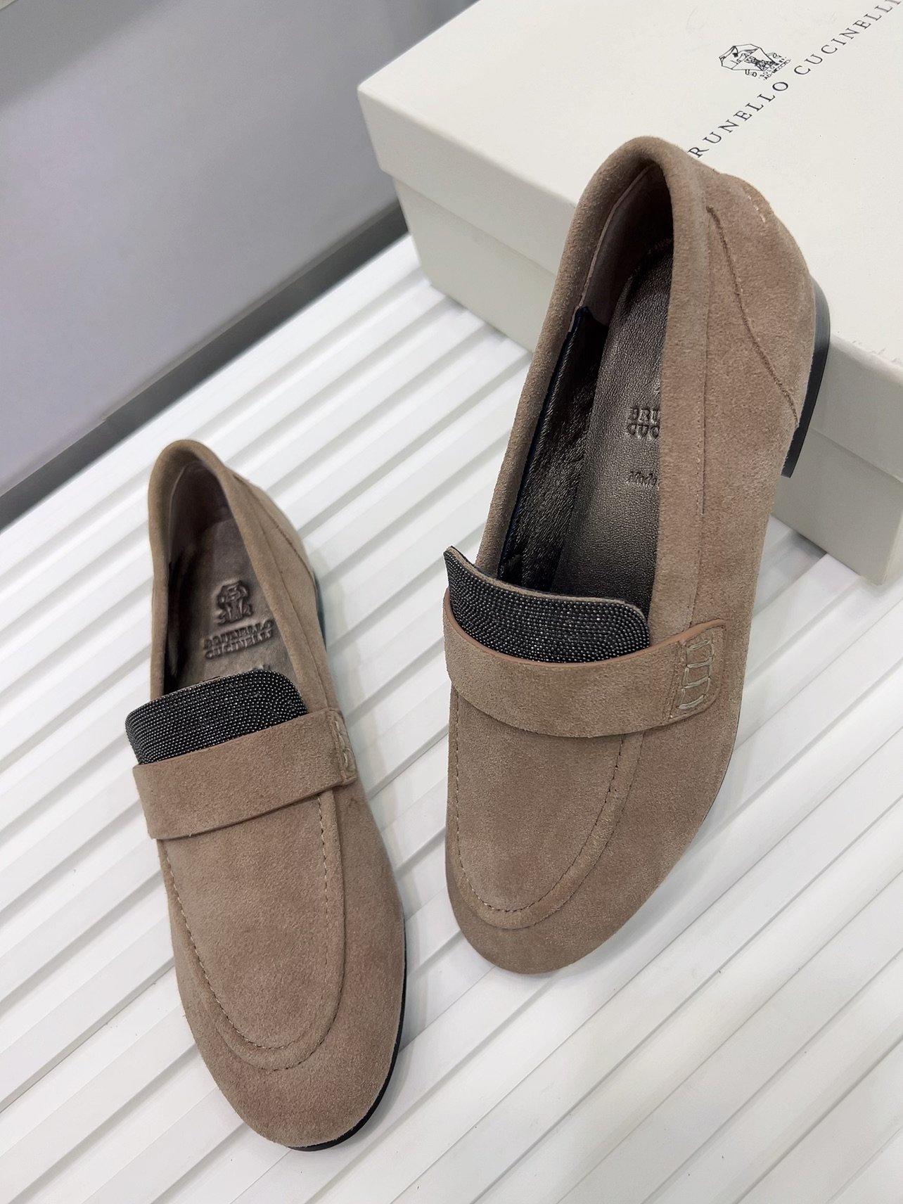 Brunello Cucinelli’s “Exclusive” and “Highest Quality in the Market” BC flat sole shoes, with upper material made of imported high silk shiny cowhide and original silk sheepskin insoles ➕ Handmade string bead accessories. Original genuine leather outsole at the counter (made of high-quality materials)
