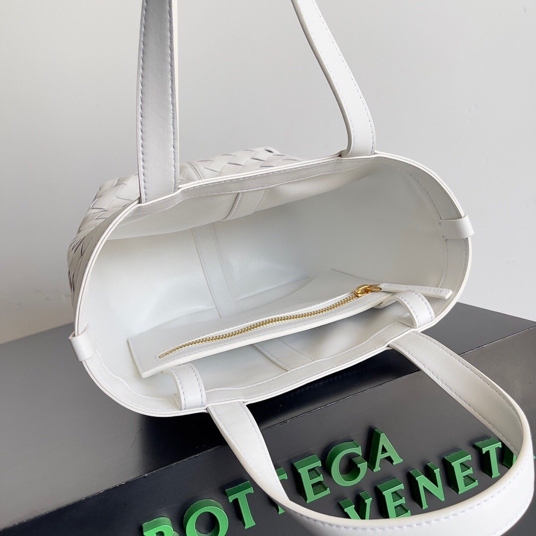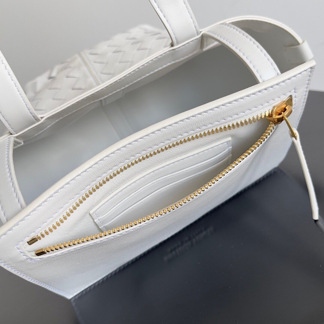 BV’s new early autumn tote Intreccciato woven tote handbag with contrasting zipper pockets