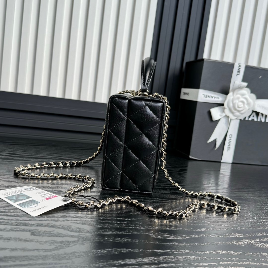Chane1 ☪️ 24k makeup bag AS5168 exudes a sense of luxury, practicality, and fashion. Classic light gold chain with sheepskin double C logo. I love this makeup bag more and more. It looks beautiful and greasy to carry and can be paired with any clothes to make you look stunning. Size: 15 × 22 × 7.5