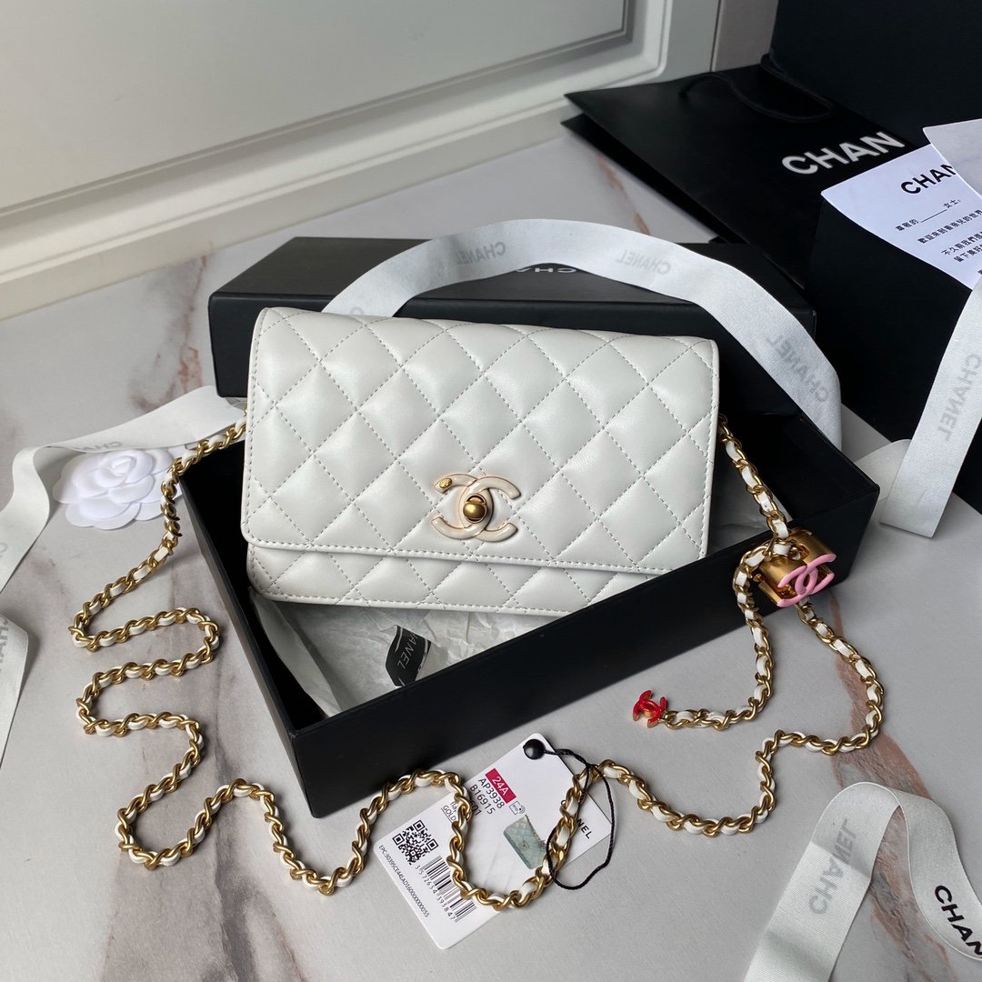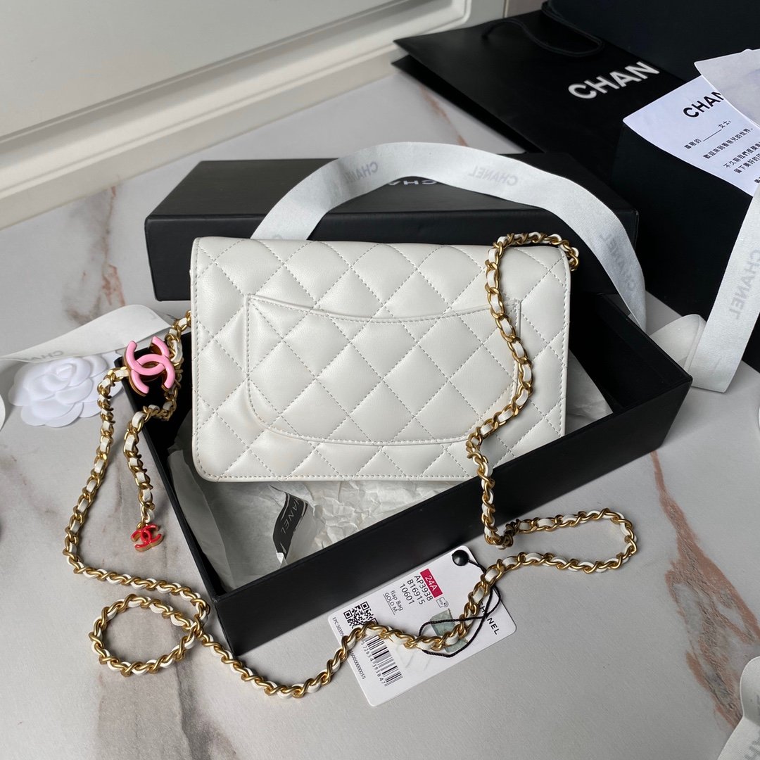 Chanel 124A Handmade Visit Series New WoC A Sheepskin with Color Buckle is really exquisite! The high aesthetic enamel logo and dual C adjustable buckle are a highlight~I love this WoC more and more. It’s so beautiful that it can be paired with any clothes to make you look absolutely stunning. Size: 19cm