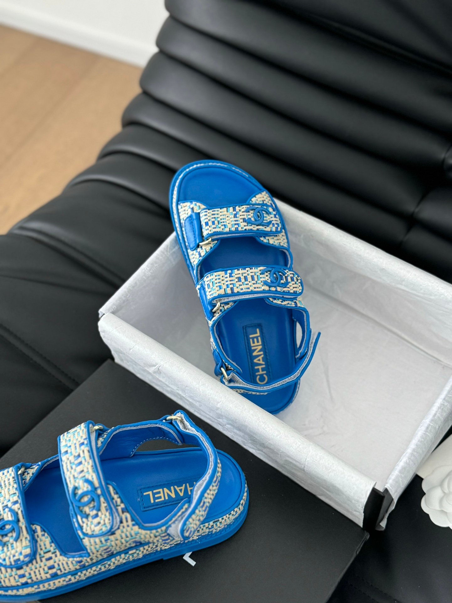 Chanel 24 new Velcro sandals collection Foam Bottom Version Velcro layout requires a genuine leather outsole version ➕ thirty High version shoe upper with cowhide and sheepskin lining Size:35-40