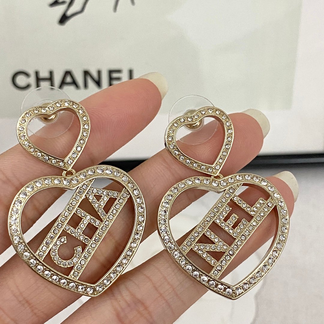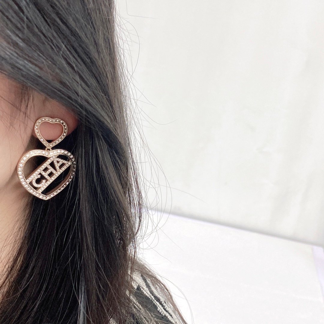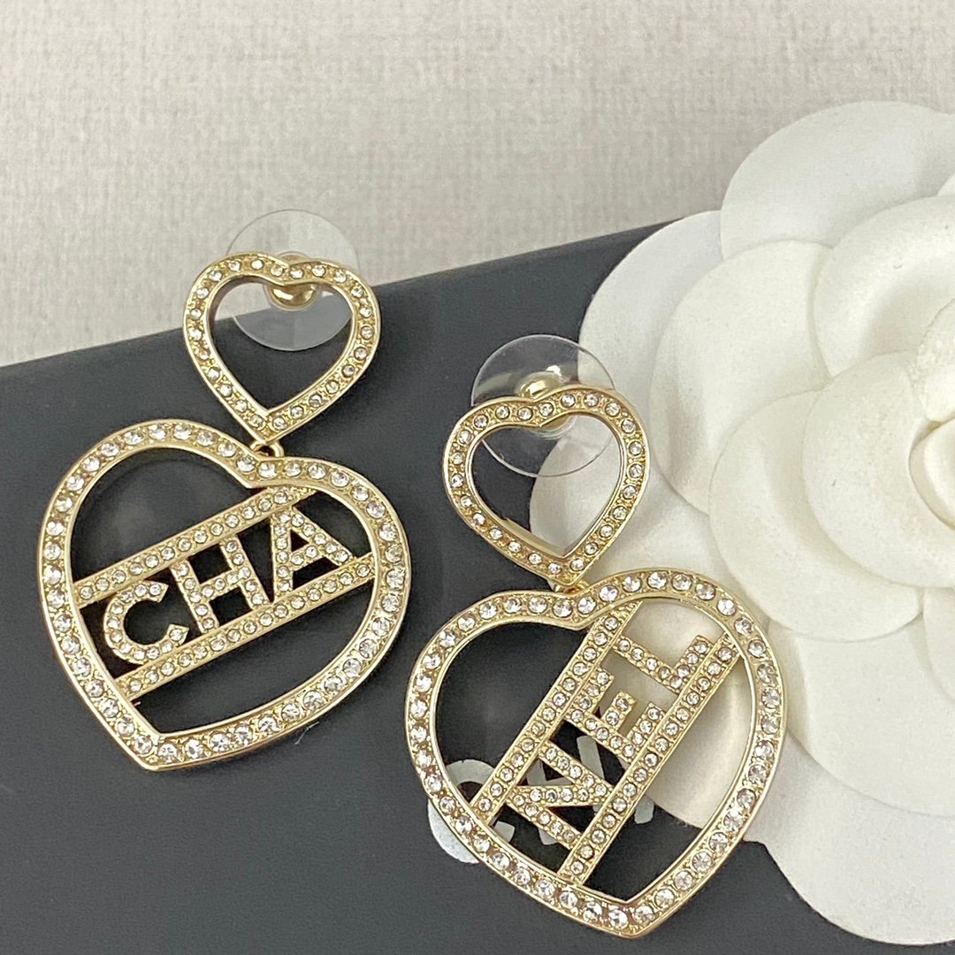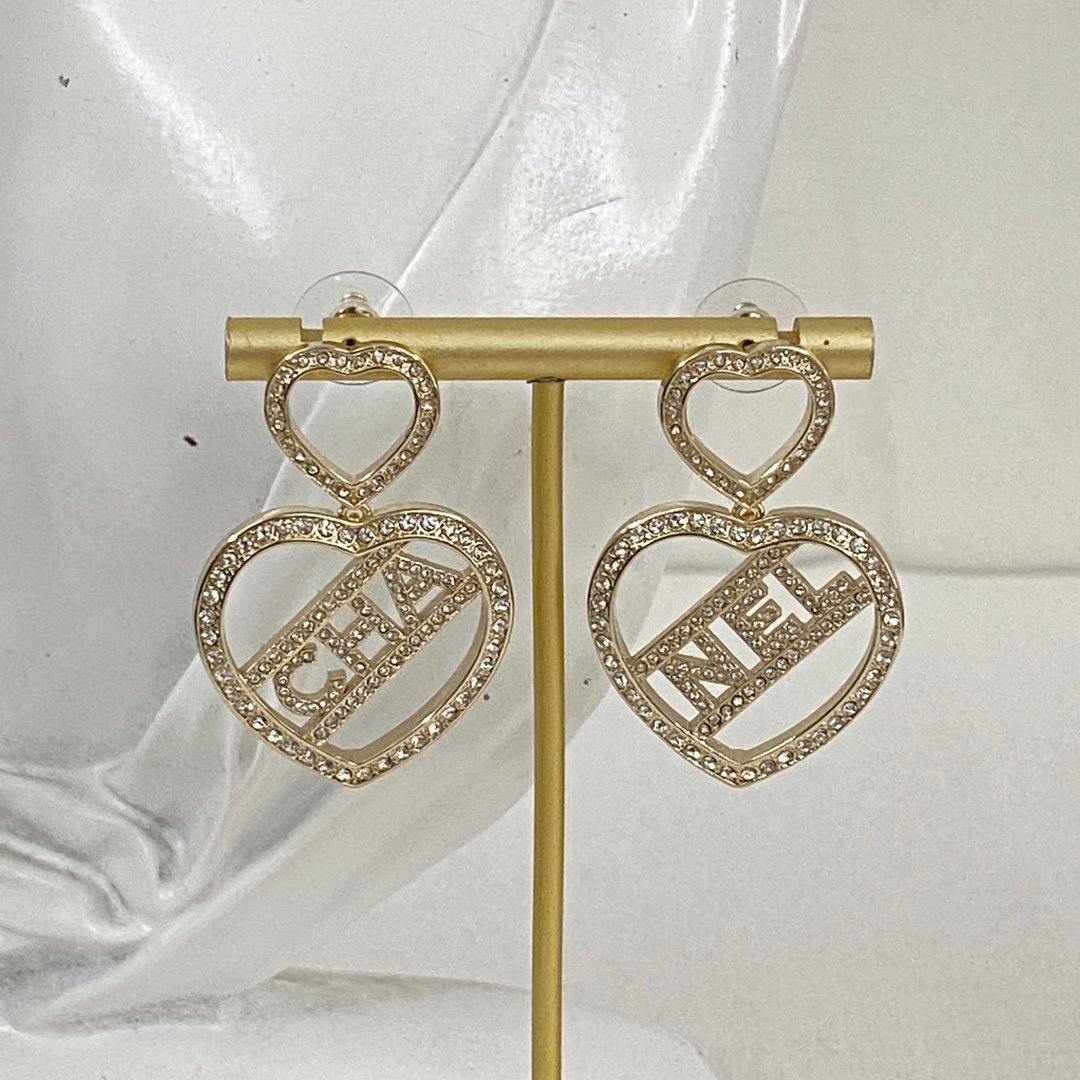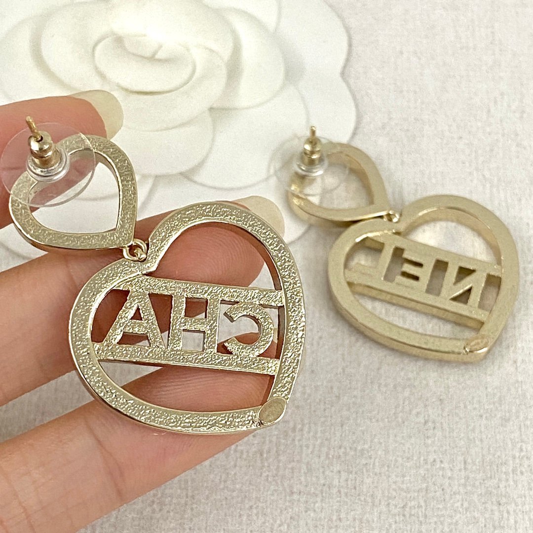 Chanel double heart-shaped hollow letter earrings