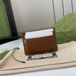 Complete set of original green box packaging “[New product] GG Marmont series card holder The GG Marmont series card holder is made of quilted leather with a wavy design. Brown quilted wavy leather and black leather details Double G Four card compartments, one open pocket 7 centimeters (length) x 10 centimeters (width) Retro gold metal accessories Italian Creation Model: 443127. Size: 7 (length) x 10 (width) Color: Brown/Full Leather. Italian Creation