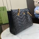 Complete set of original green box packaging “[New product] GG Marmont series large tote bag. The GG Marmont collection continues to shine in the spring/summer 2024 collection. This large tote bag is crafted with black stitched leather, paired with timeless double G logos and gold accents, showcasing the brand’s classic charm. Black stitched V-shaped leather, antique gold colored accessories Suede material with ultra-fine fiber lining double G, open inner pocket, adjustable leather handle. Model: 779724. Size: 34x 28x 12.5cm. Color: Black/Original Leather. Italian Creation The model is 176 centimeters tall Maximum capacity: iPhone Pro Max/Plus, Airpods headset, small wallet and lipstick