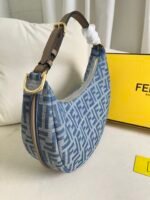FEND1painting Underarm Bag, featuring a crescent shaped design, with the classic metal logo [FEND1] decorated at the bottom of the bag. The silhouette of the bag is very close to the body’s lines, and when carried under the armpit, it is full of fashion sense, like a walking grass planting machine!