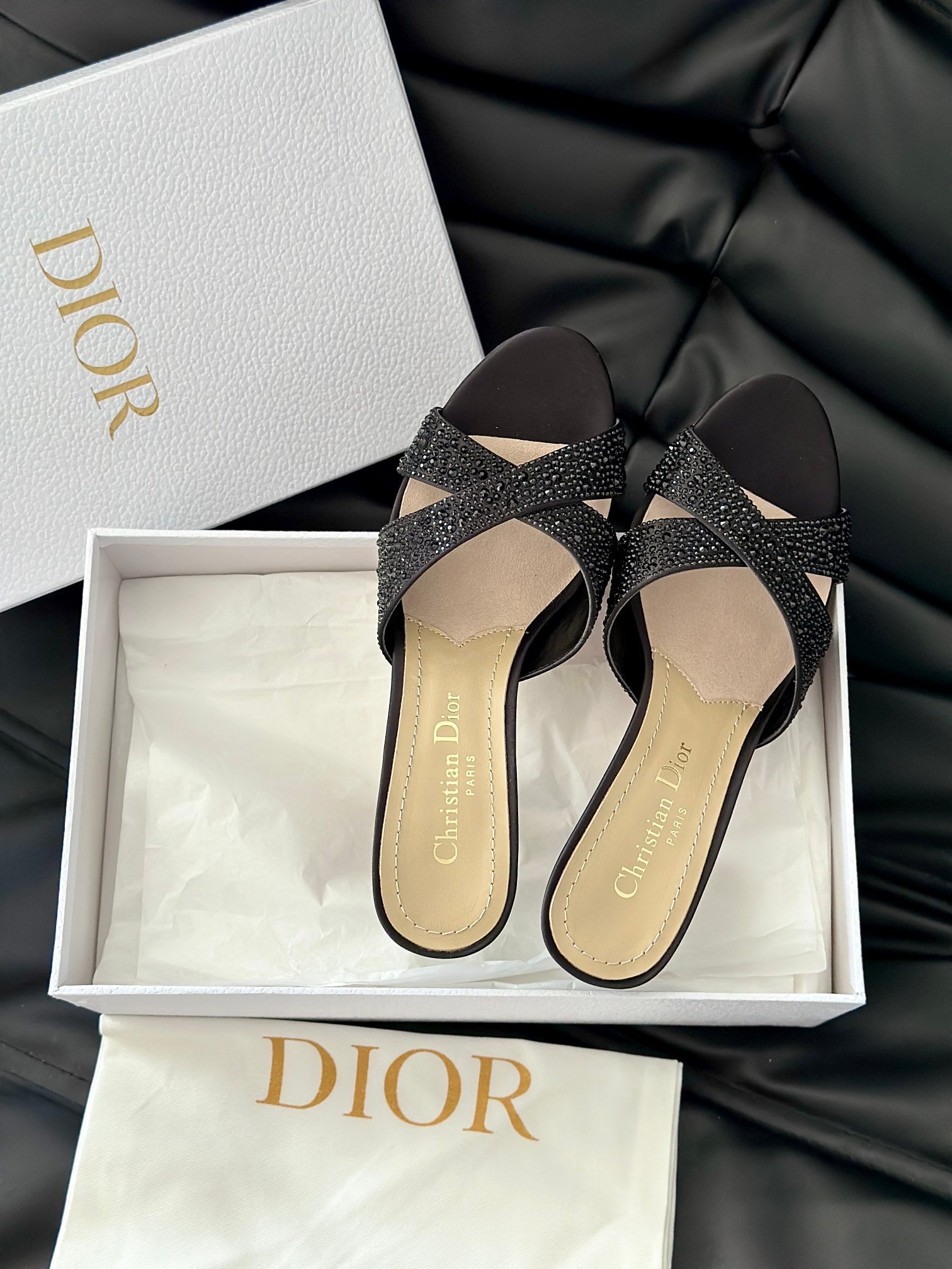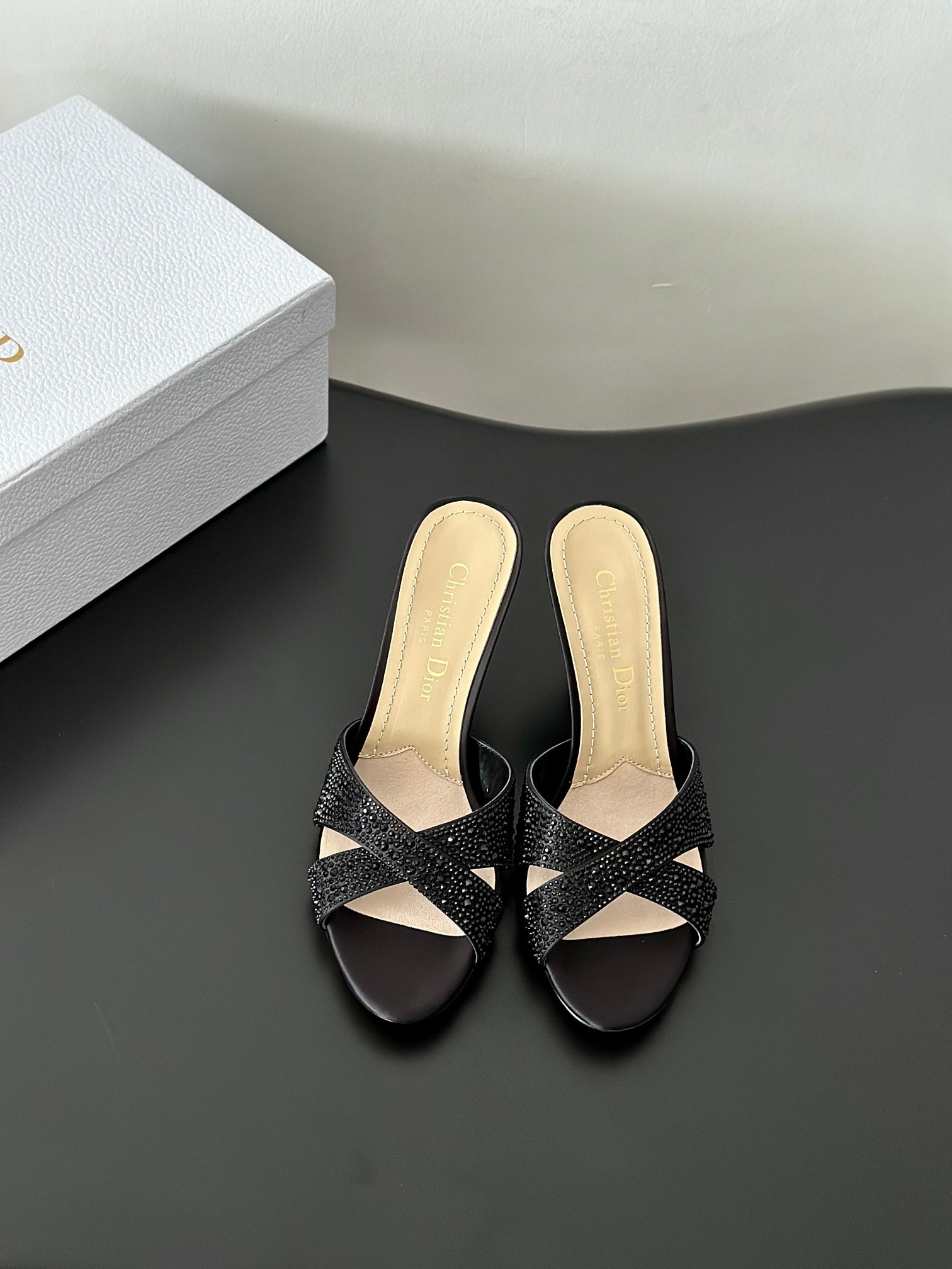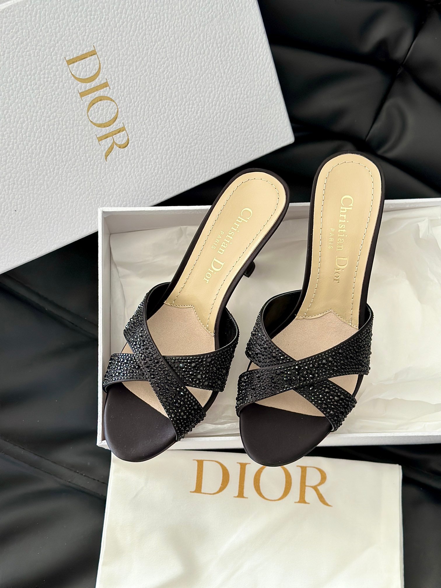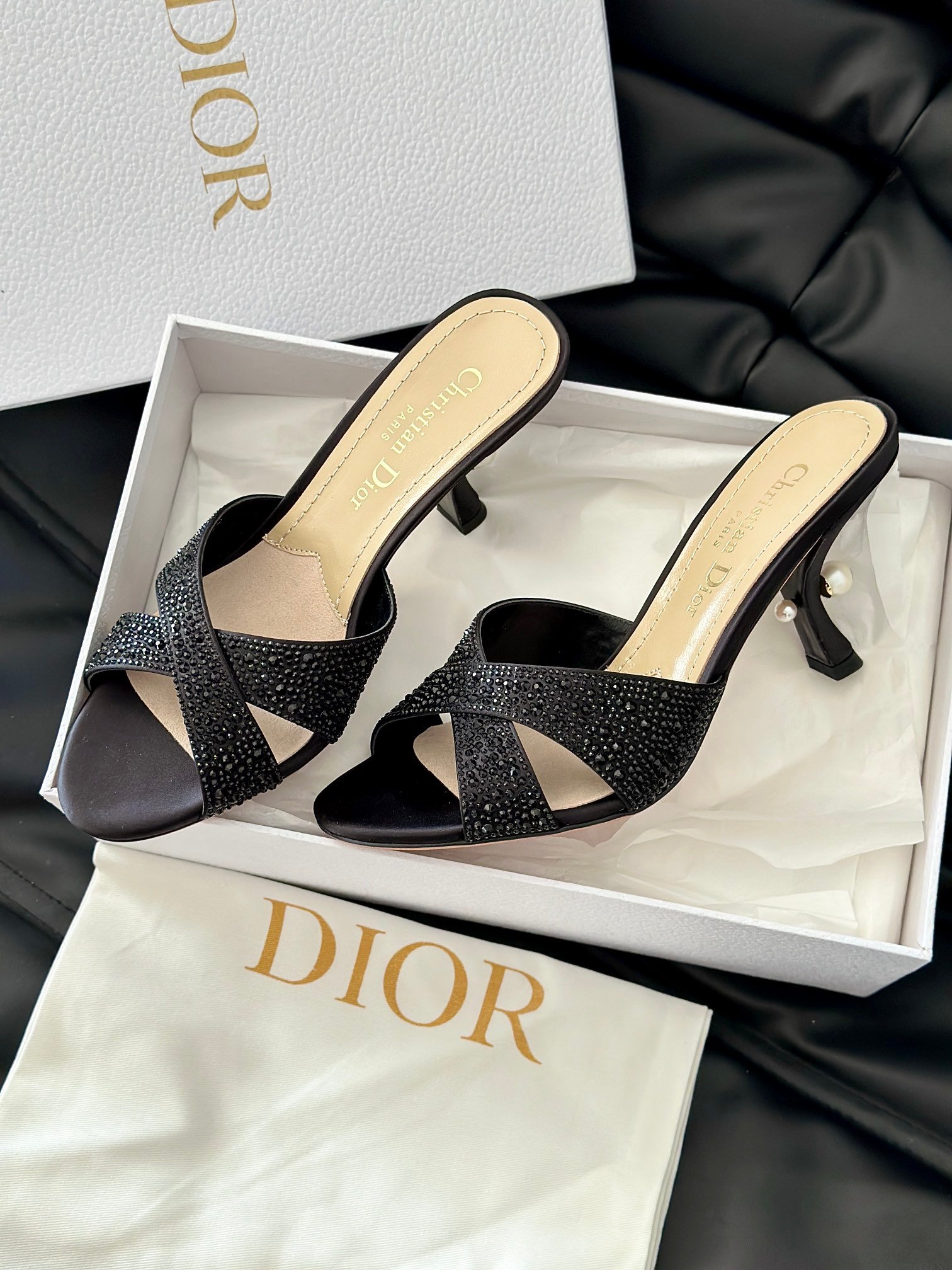 Dior 24/New Pearl Velvet Crystal High Heel SlippersThe