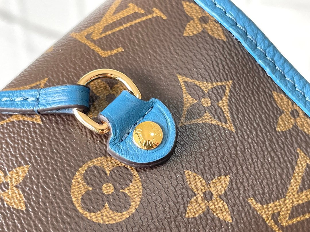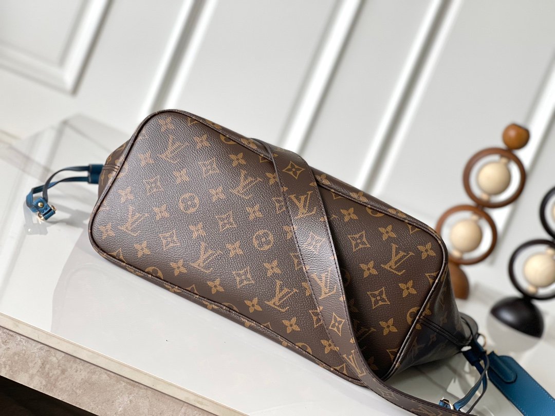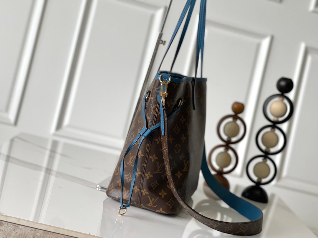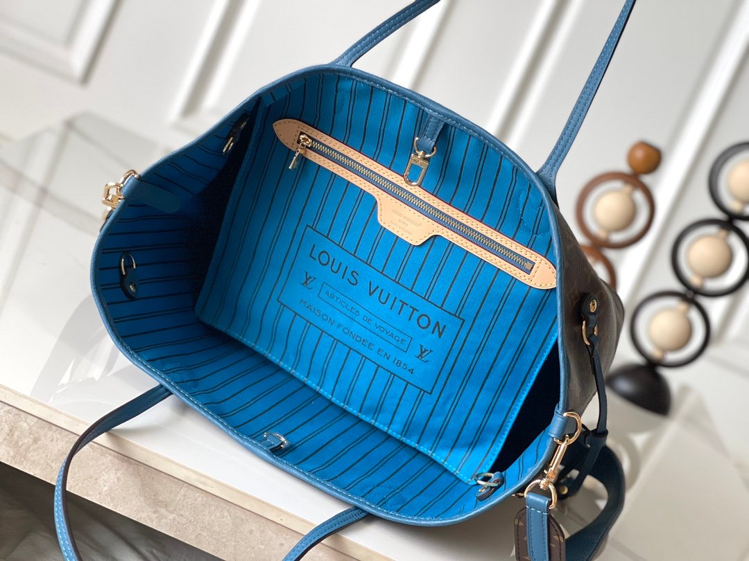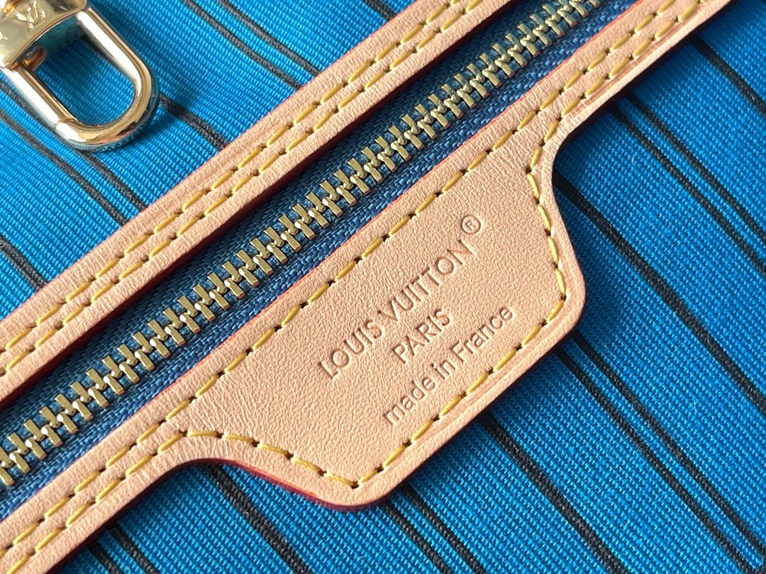 This blue M13753 double-sided Neverfull medium-sized handbag with legendary colors: always able to meet your various needs for handbags. Large capacity but not bulky, firm and soft to the touch, suitable for both home and travel. Tighten the side straps and immediately transform into a stylish urban handbag. Loosen the straps and turn it into a unique and practical handbag. The slender leather handle is suitable for shoulder and back, and can also be carried between arms. The item displayed here is made of Damier Azur canvas.