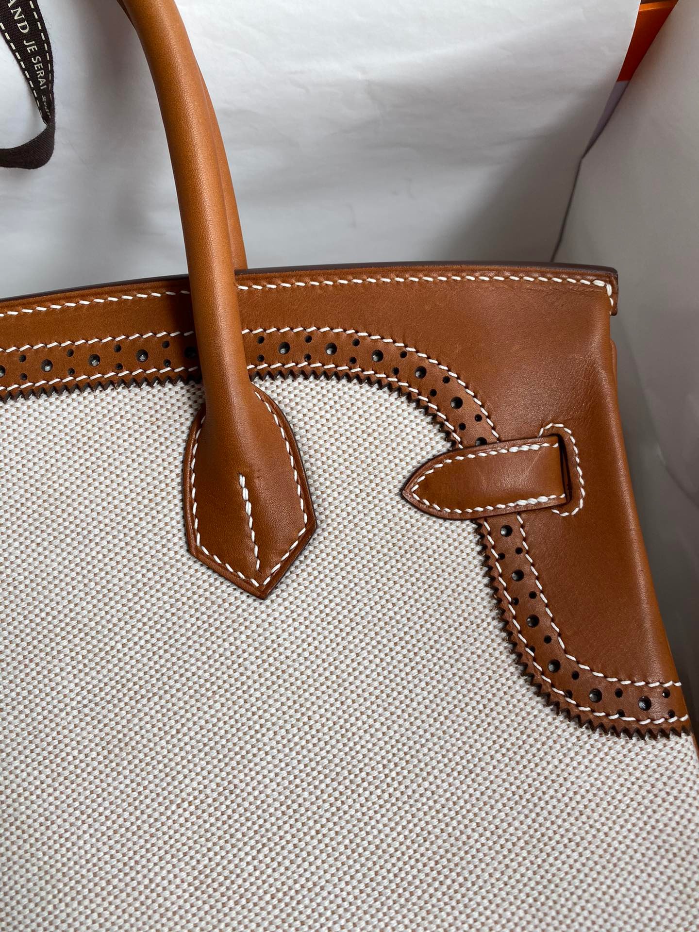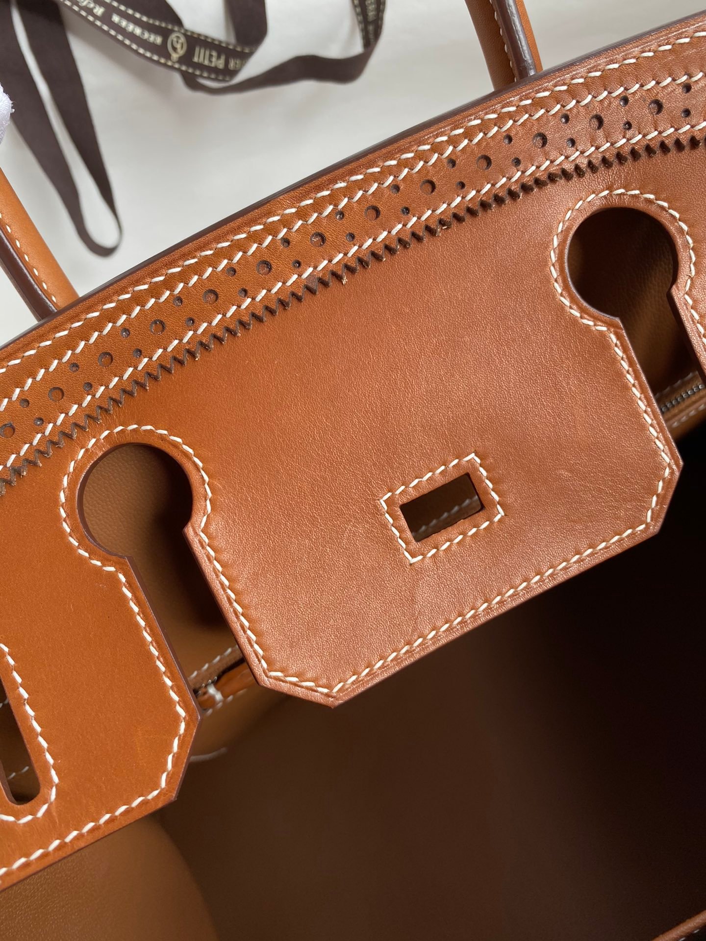 Hand sewn Birkin 30cm lace lace, imported saddle leather, dense woven fabric, gold brown silver buckle