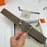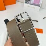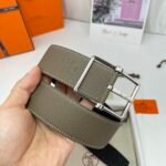 Herm ē s Box/Tago calf leather double-sided belt with palladium plated buckle.