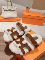 Hermes autumn/winter plush slippers