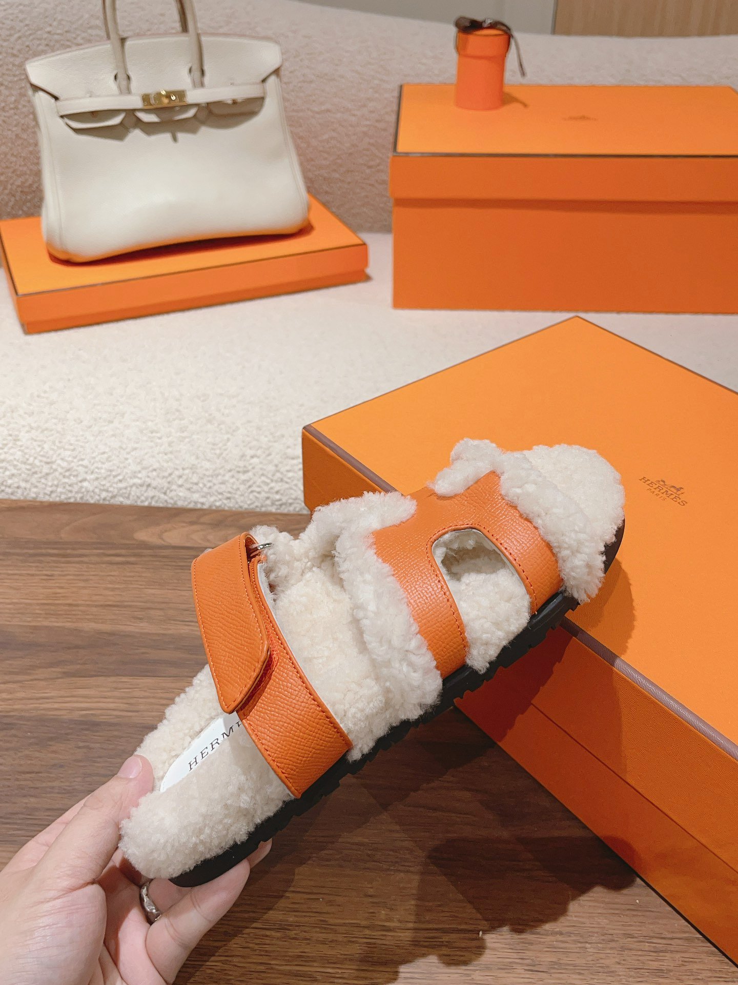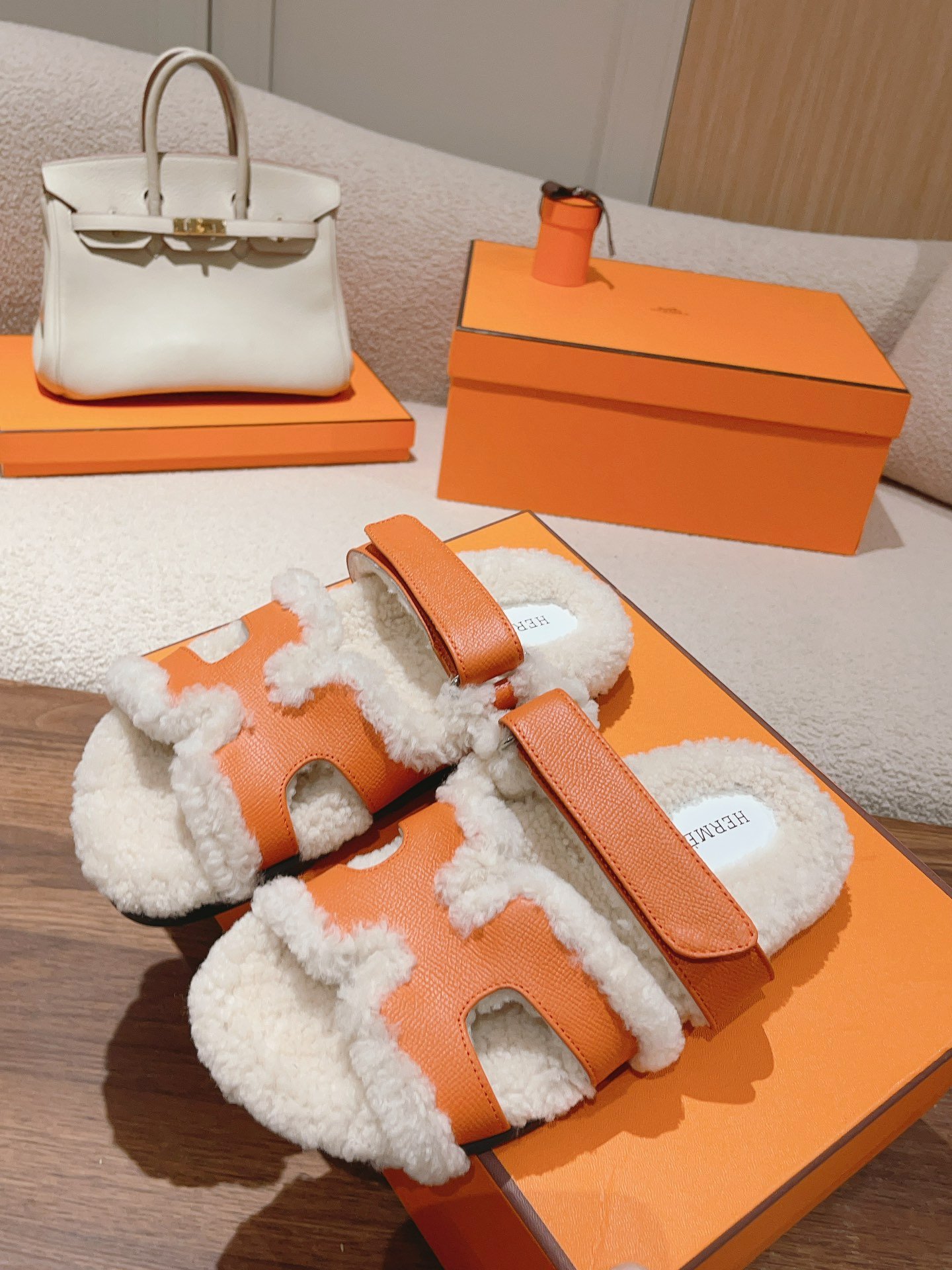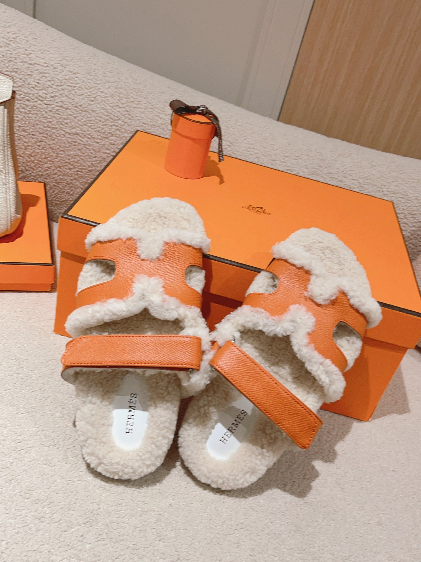 Hermes autumn/winter plush slippers