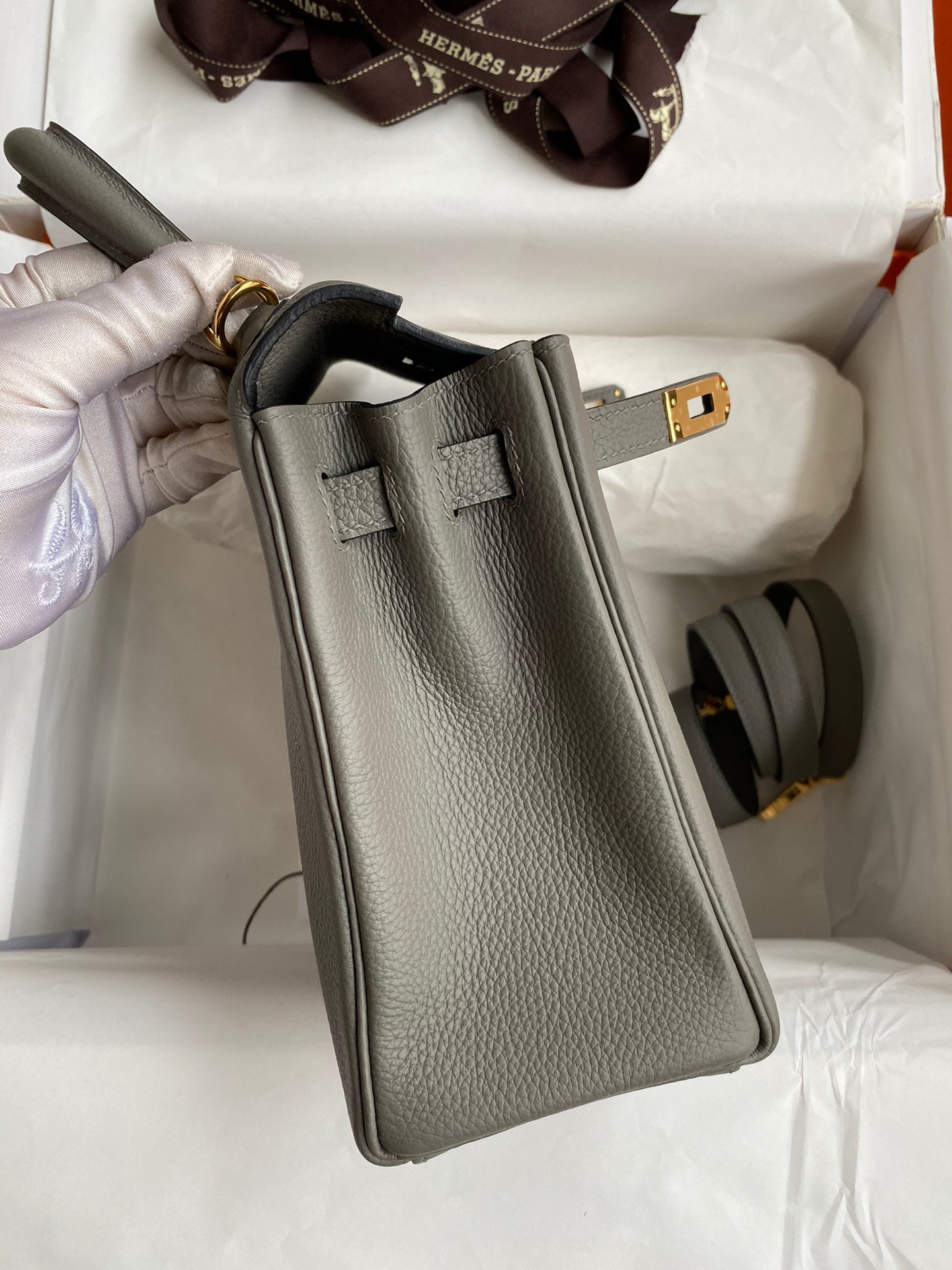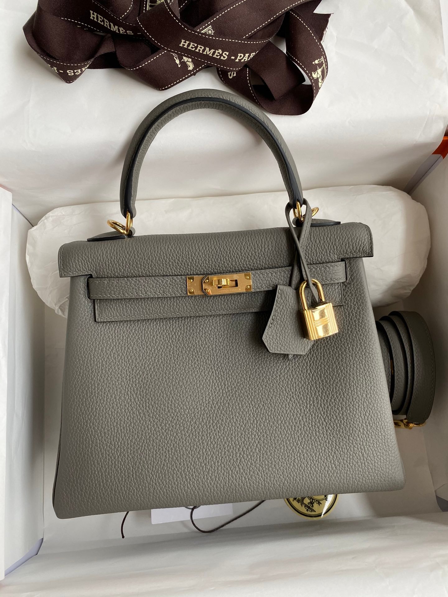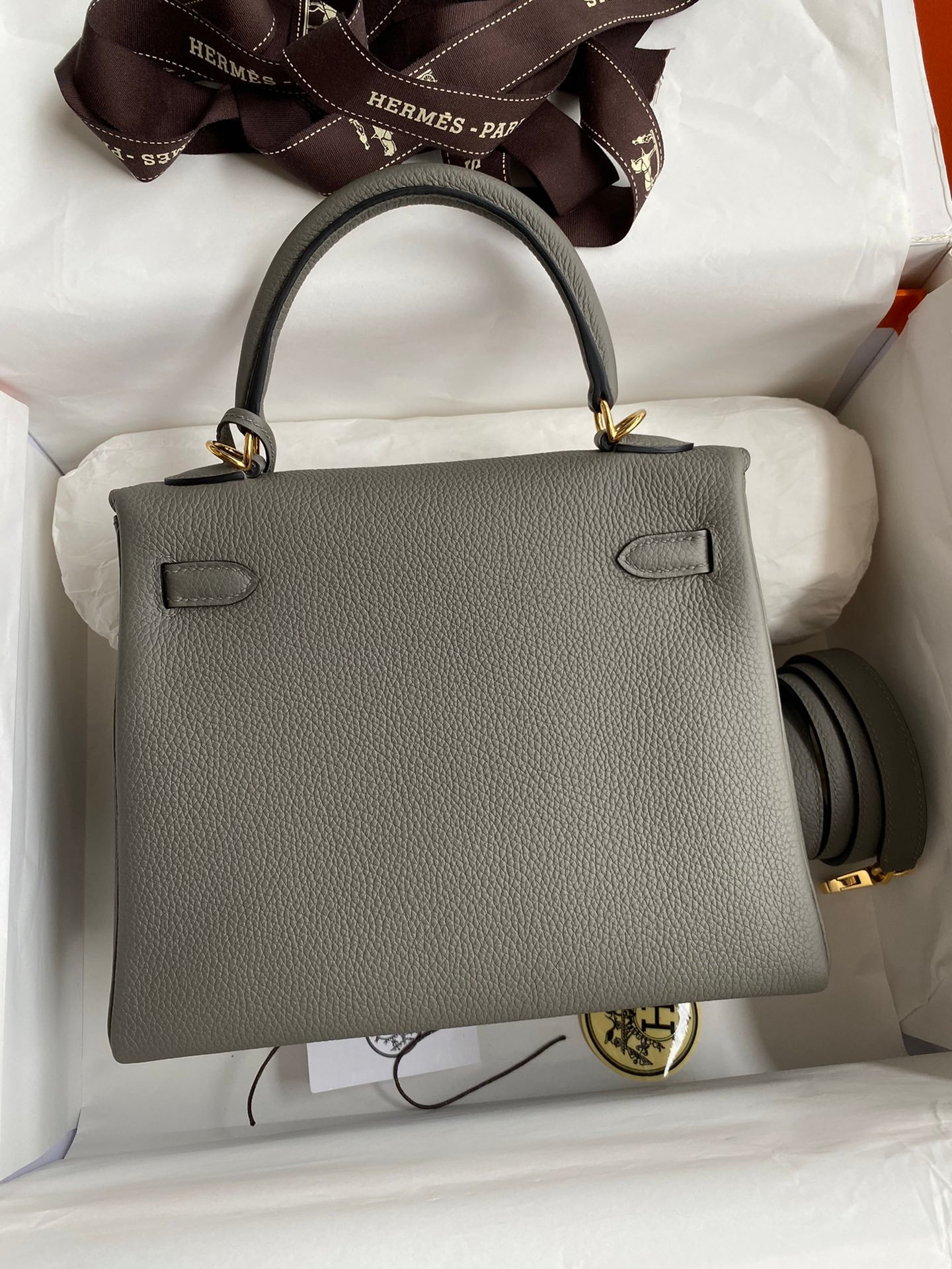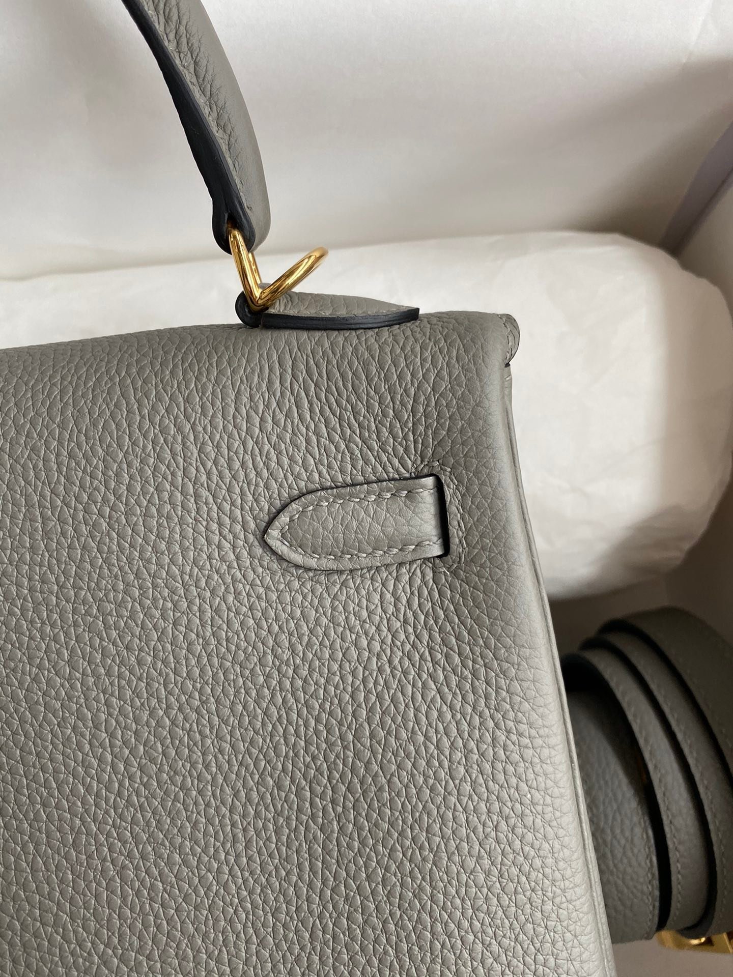 Kelly 25cm 28cm Imported Royal Calf Leather Rainy Cloud Grey Gold Buckle