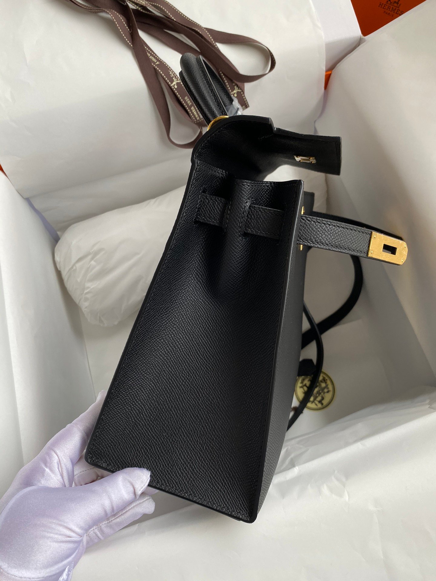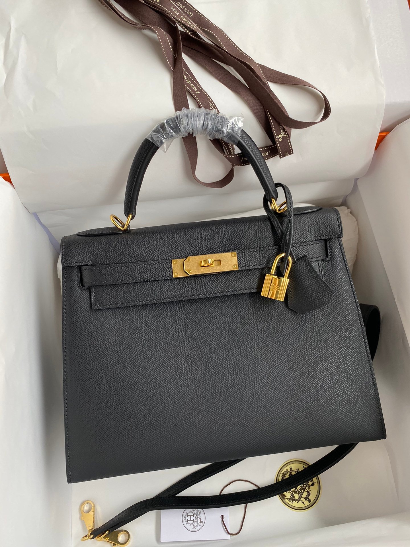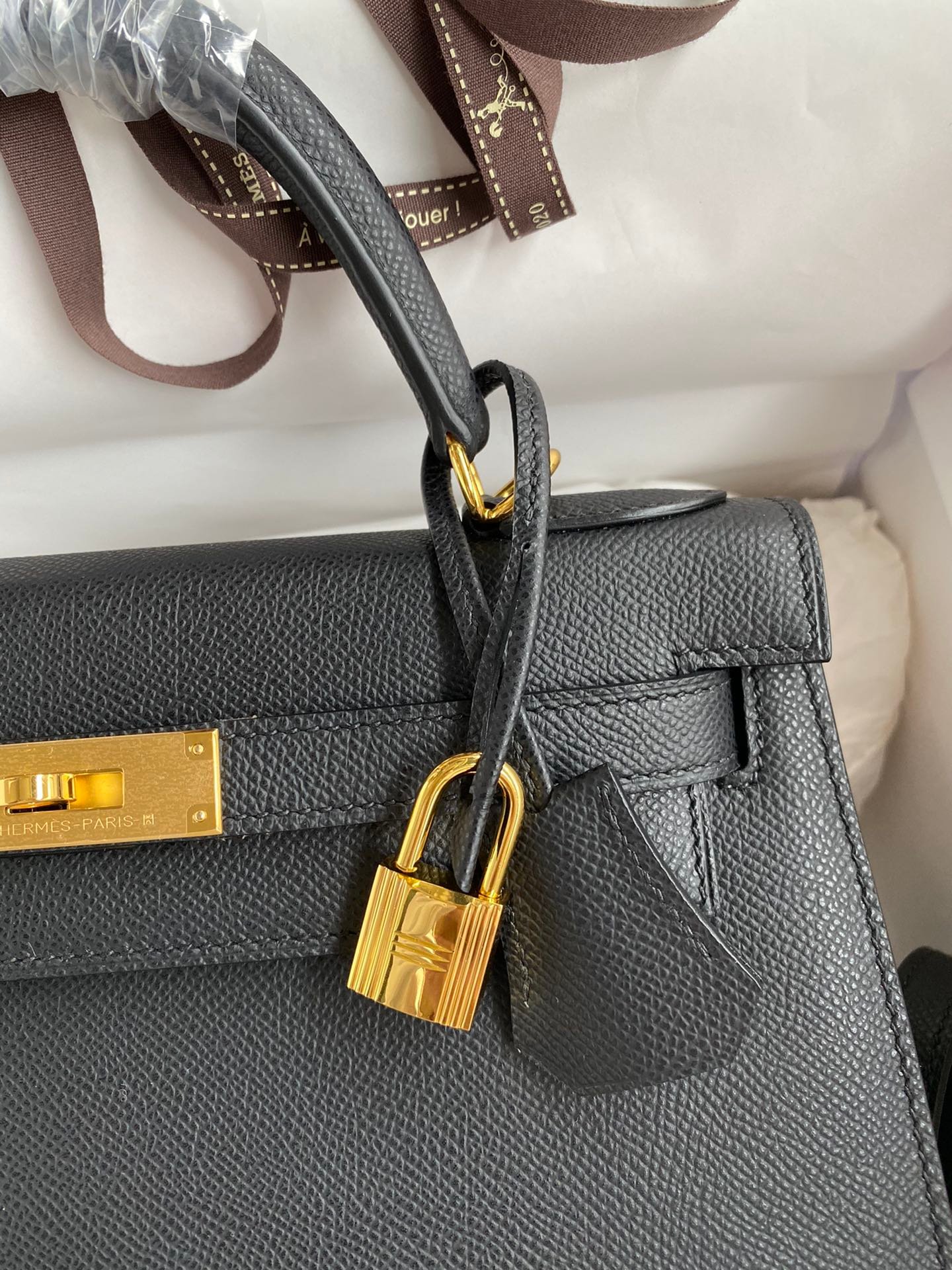 Kelly 28cm imported Epsom leather black gold buckle wax thread, handmade 28cm 25cm, semi handmade 28cm 25cm