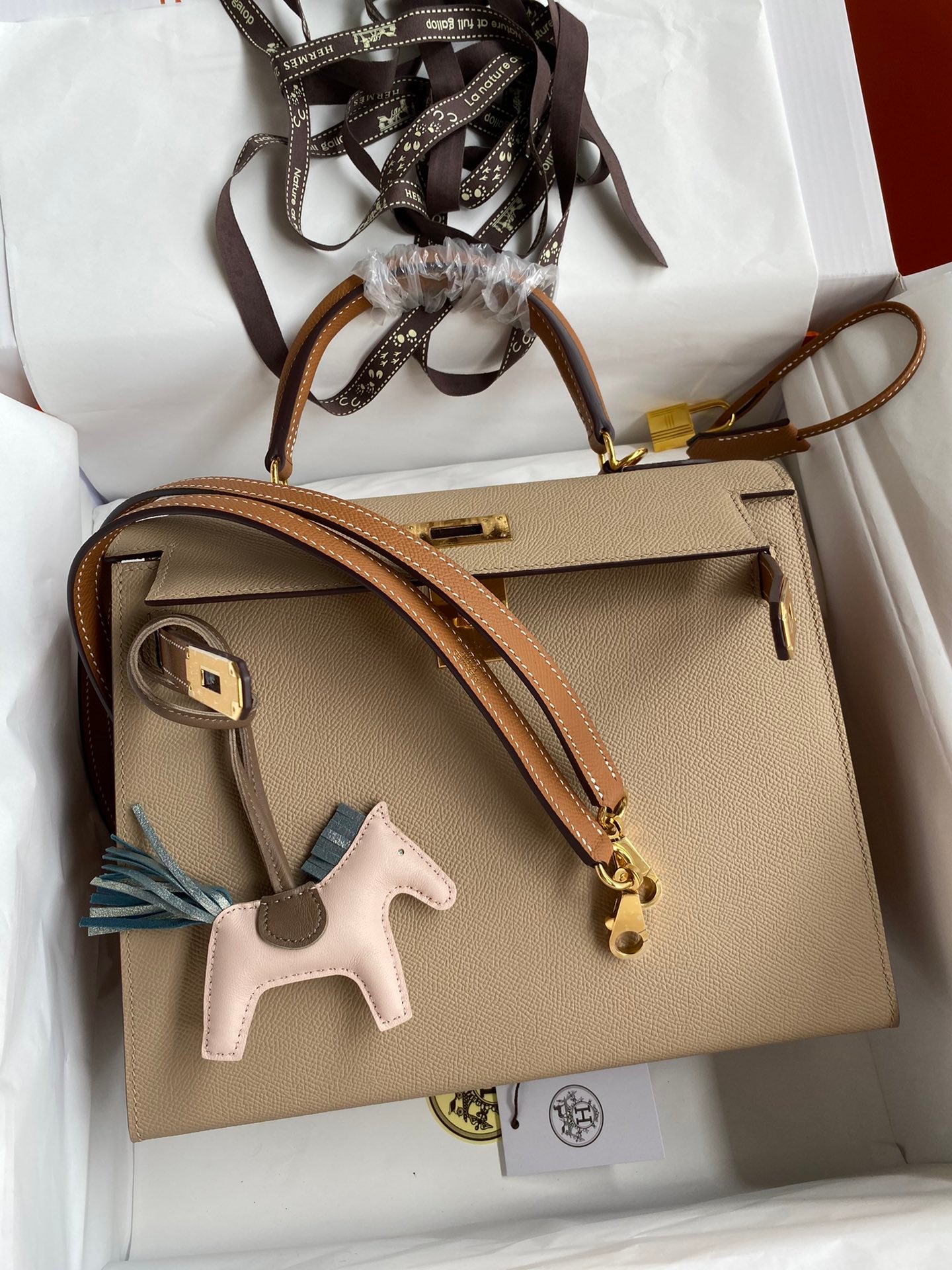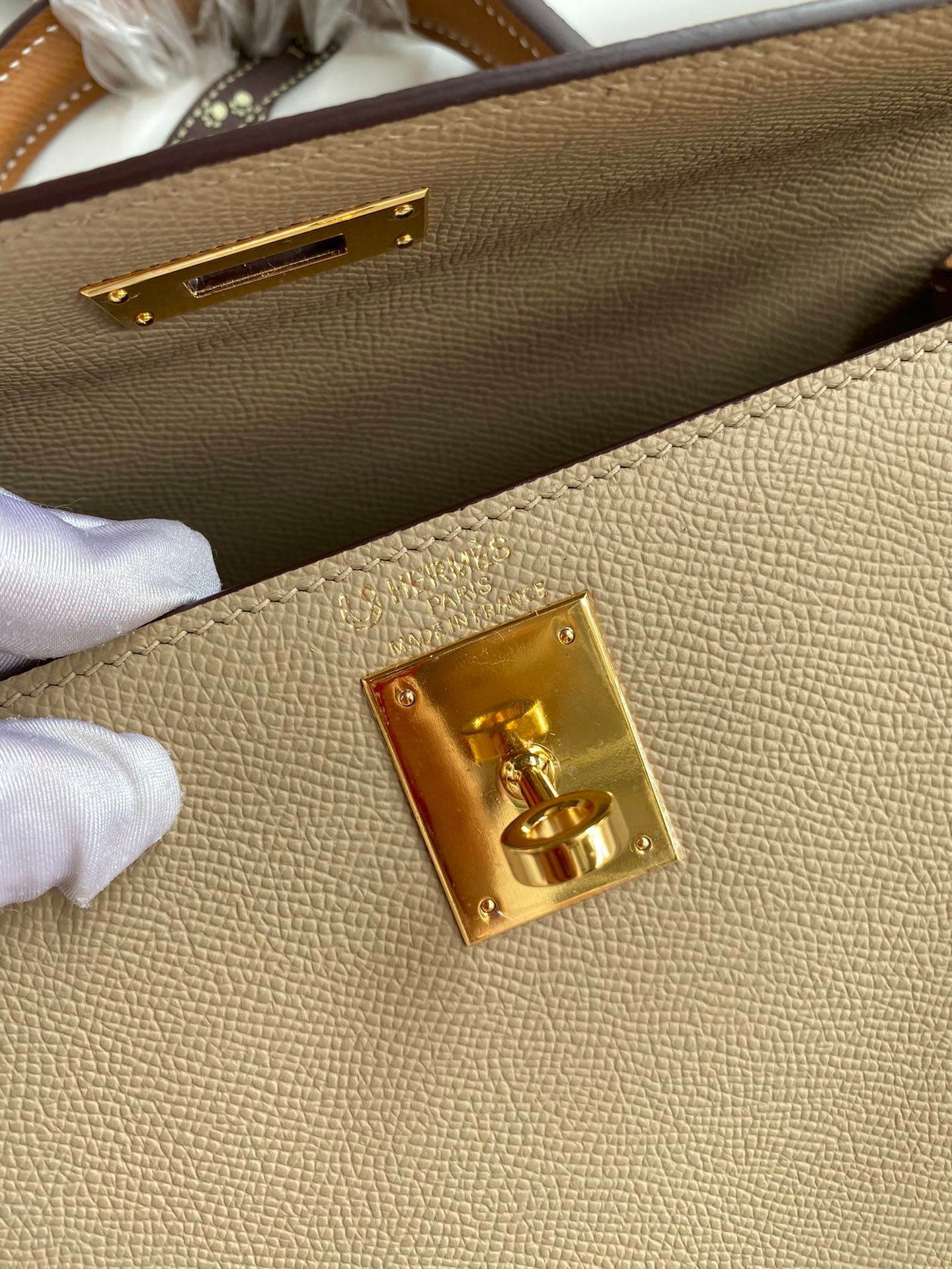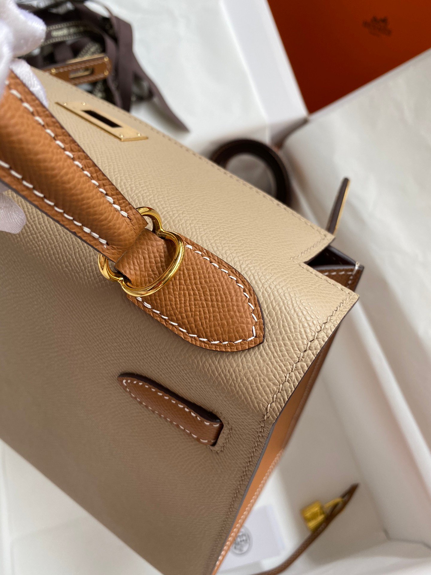 Kelly 28cm imported Epsom leather windbreaker gray gold patchwork brown gold buckle wax thread handmade 28cm 25cm, semi handmade 28cm 25cm