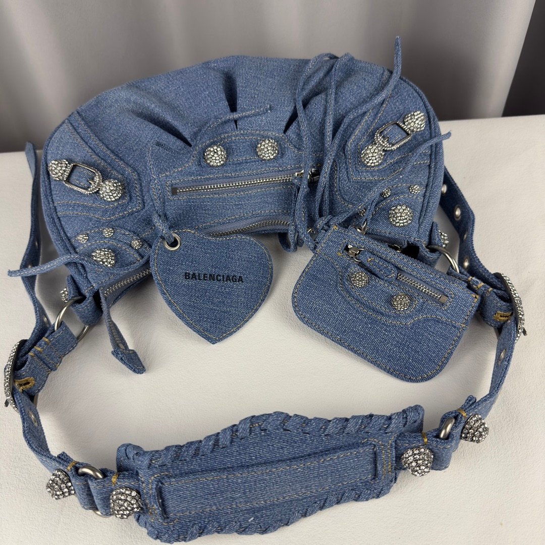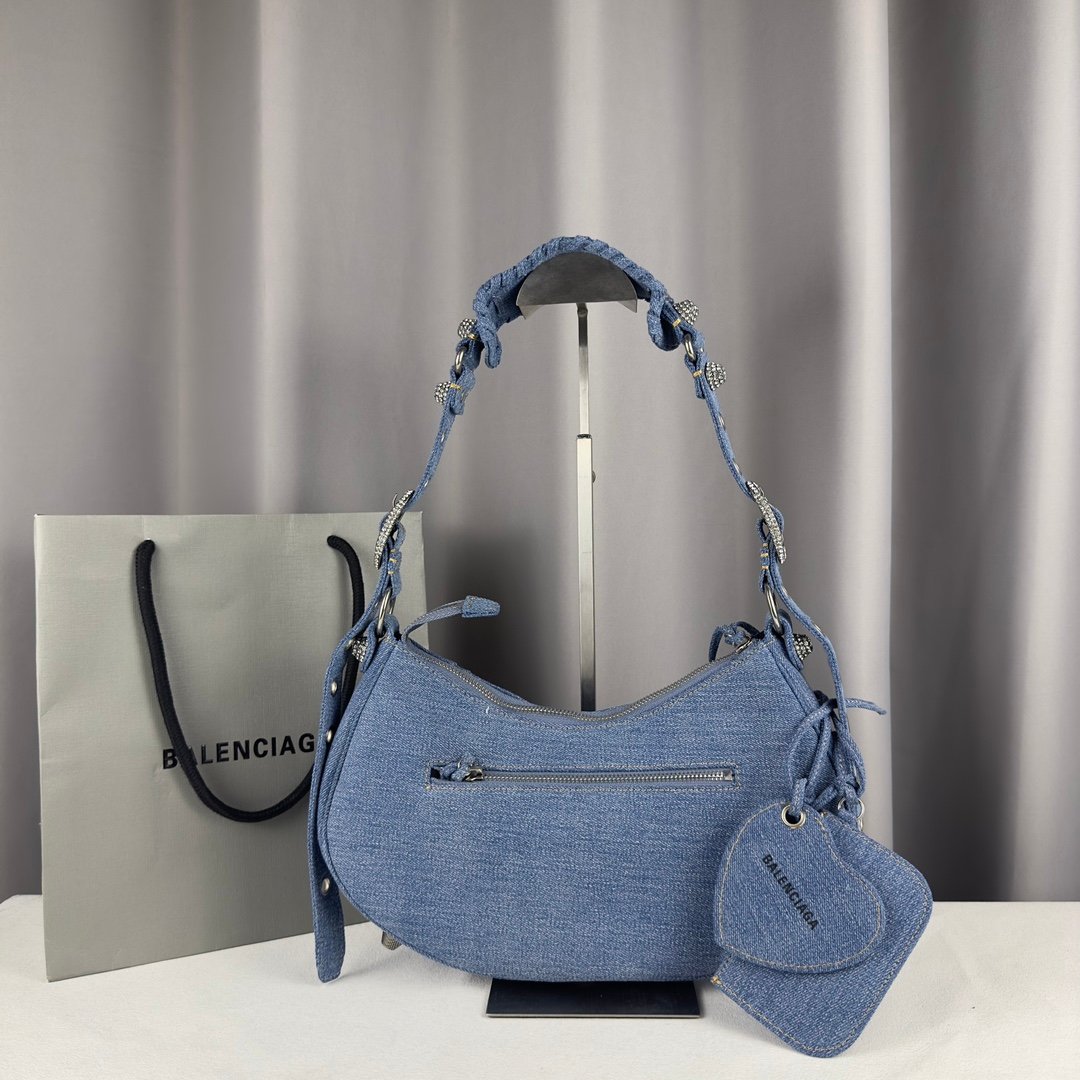 Balenciag * Le Cagole Half Moon Underarm Bag/Crossbody Bag~Improved on the traditional motorcycle bag with adjustable woven shoulder straps, additional eyelets and external leather card bag, heart-shaped hanging mirror ♡ Using classic motorcycle elements, the small and exquisite design with various back styles and each pattern design is really impressive, full of luxury and super casual atmosphere on the upper body.