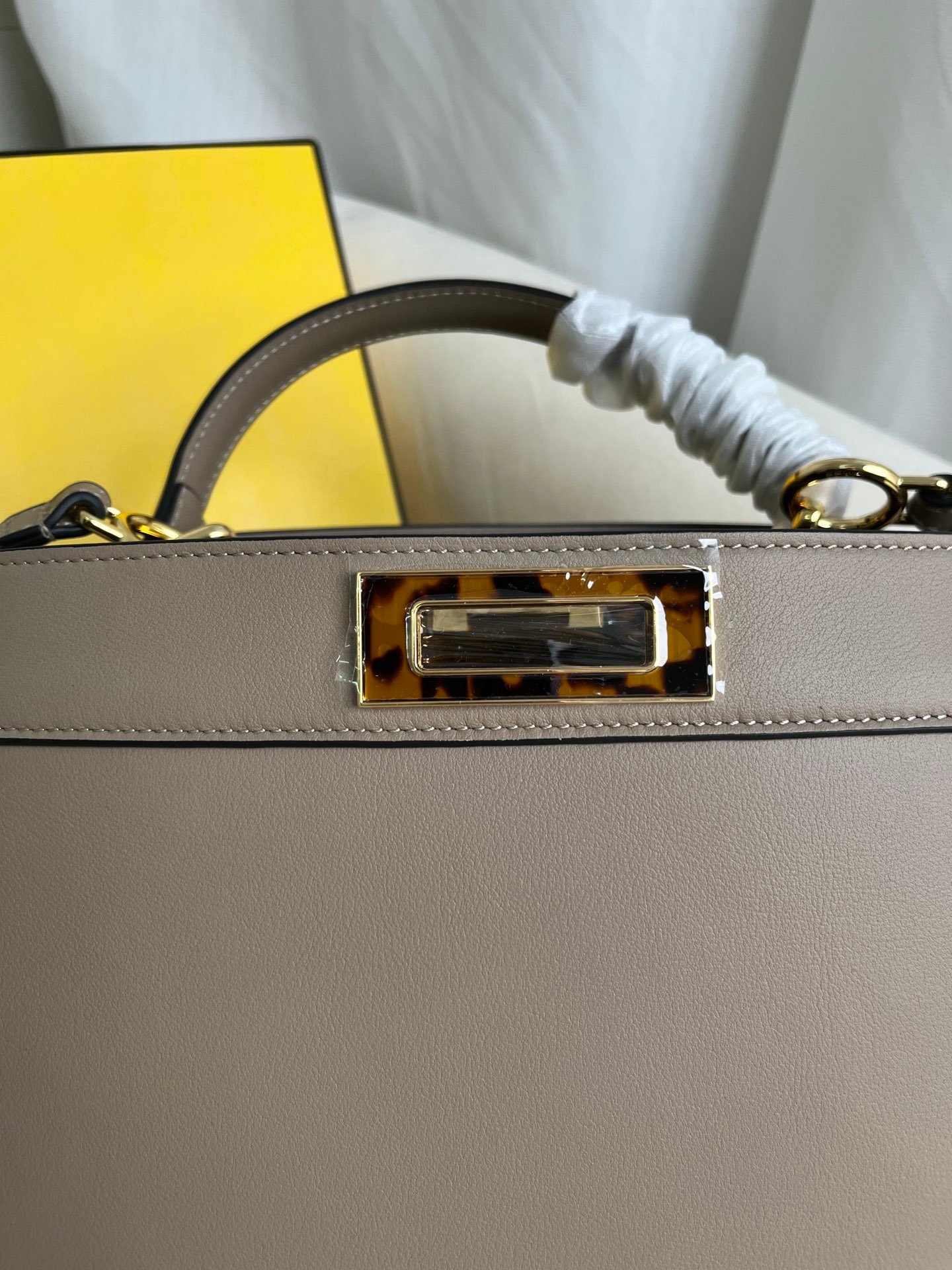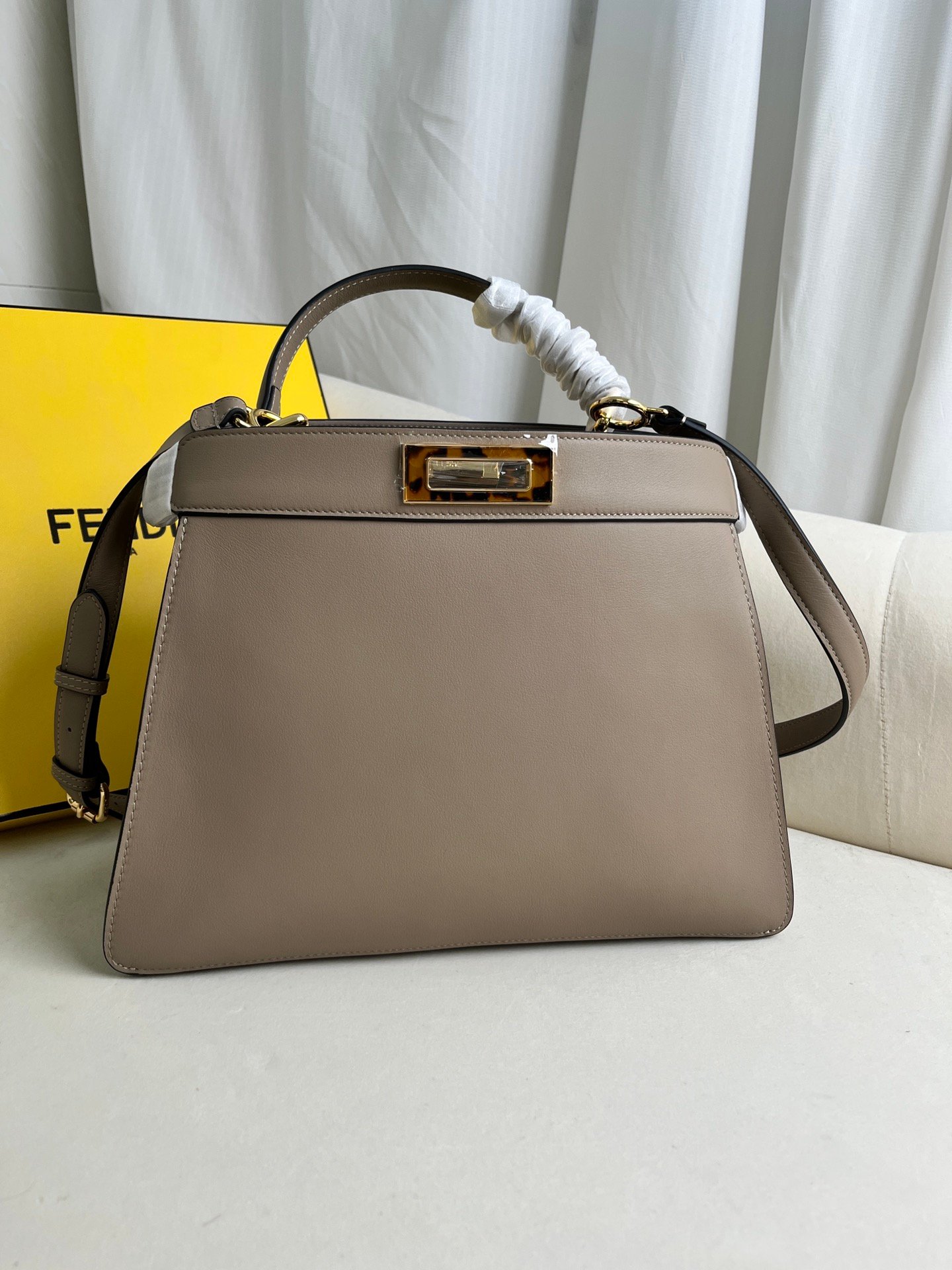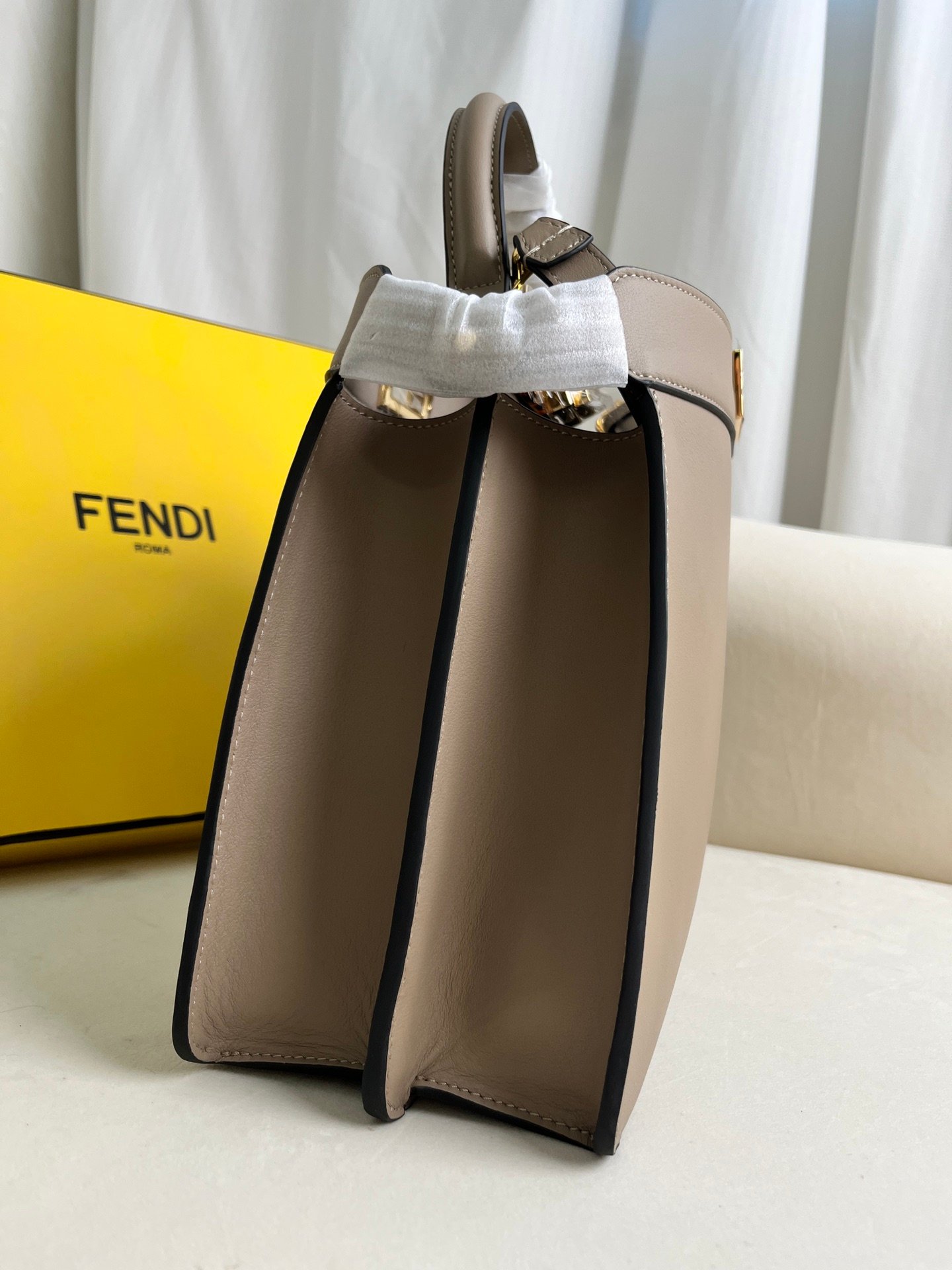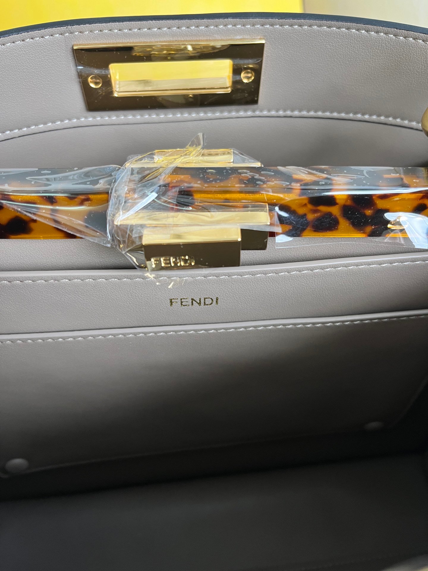Iconic Peekaboo ISeeU medium-sized handbag, made of leather material, decorated with classic twist locks on both sides. From the outside, the Napa leather lining can be seen, with two compartments separated by hard partitions, equipped with detachable and customizable internal pockets and gold metal pieces. Equipped with a handle and adjustable detachable shoulder strap, it can be carried by hand or carried over the shoulder. Made in Italy