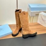 25Ss new Prada triangle logo straight leg boots Knight boots