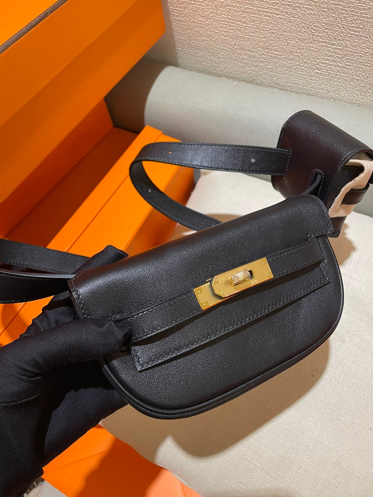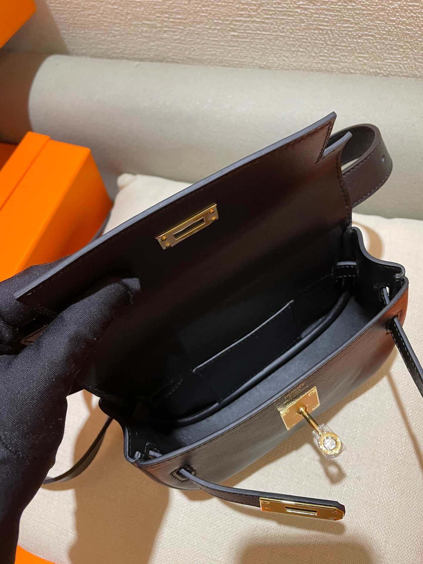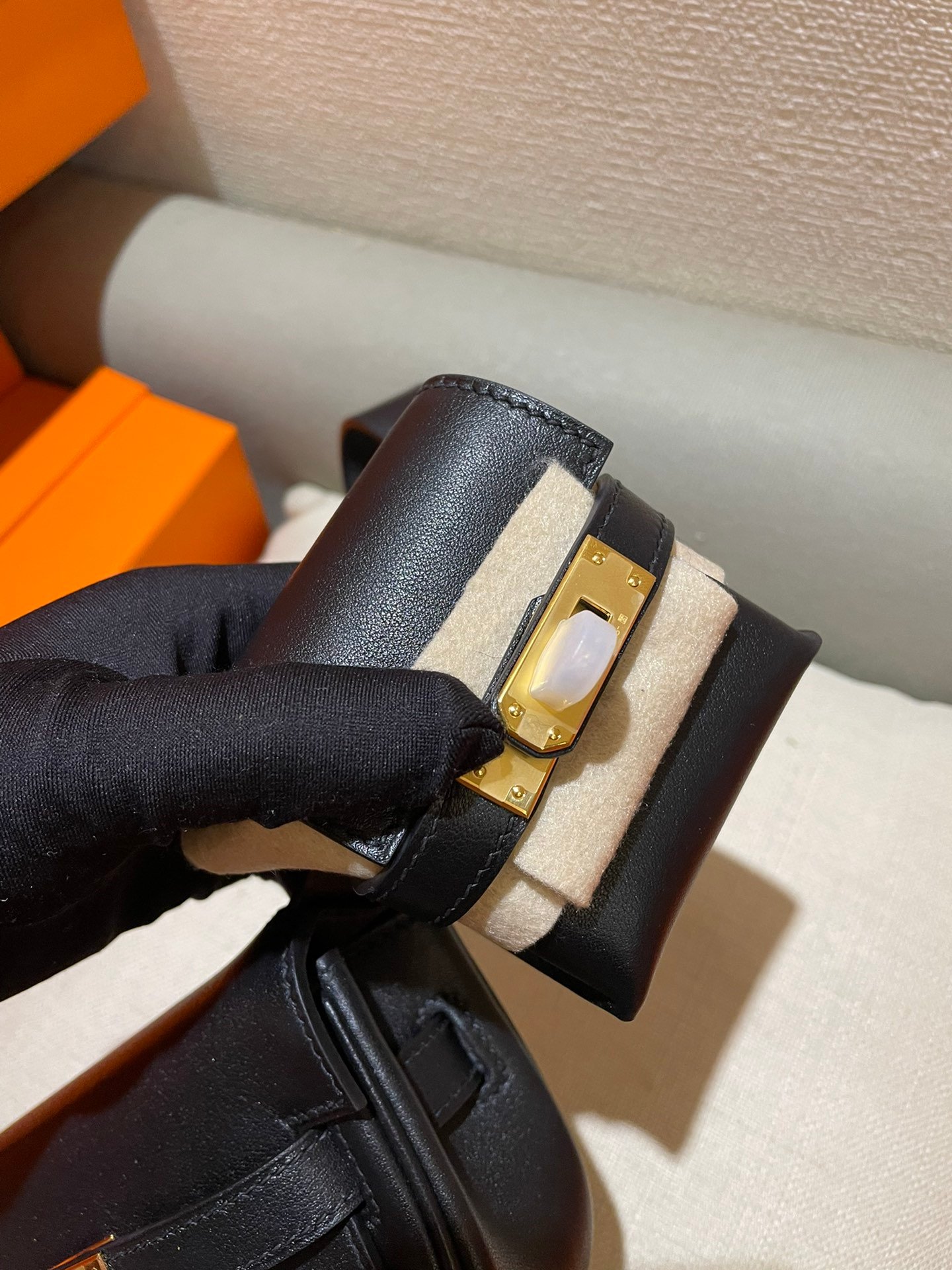 New Product Kelly Moove Dumpling Bun 17cm Original Imported Swift Leather [Black] Gold Button Counter synchronous manual wax thread sewing pure steel hardware high-end customization