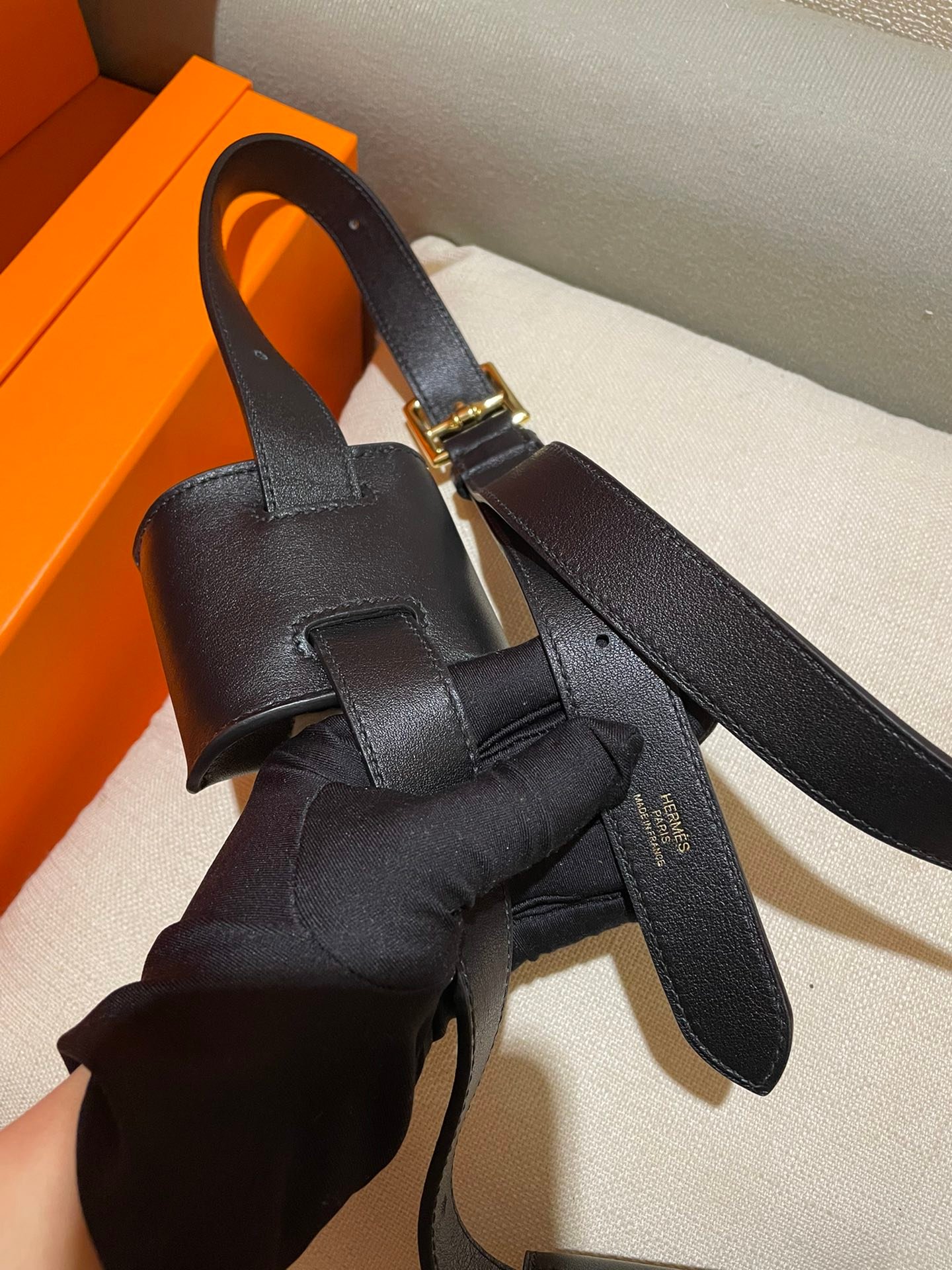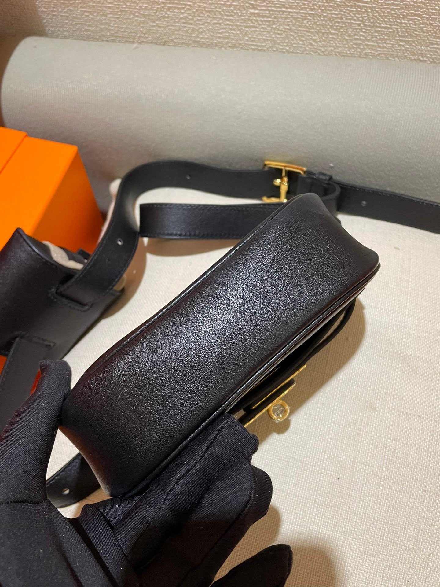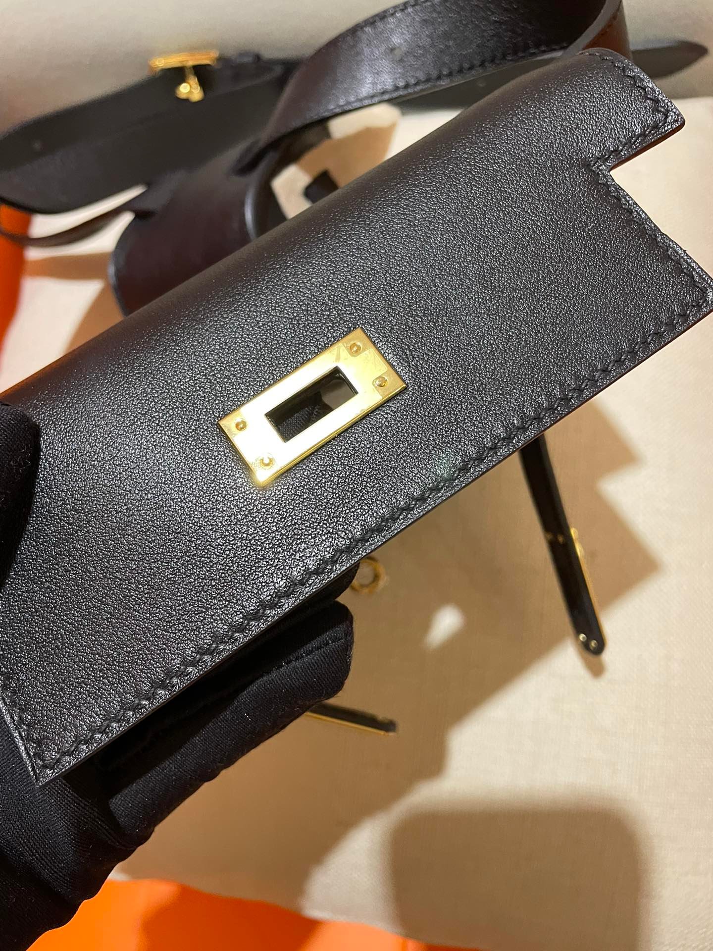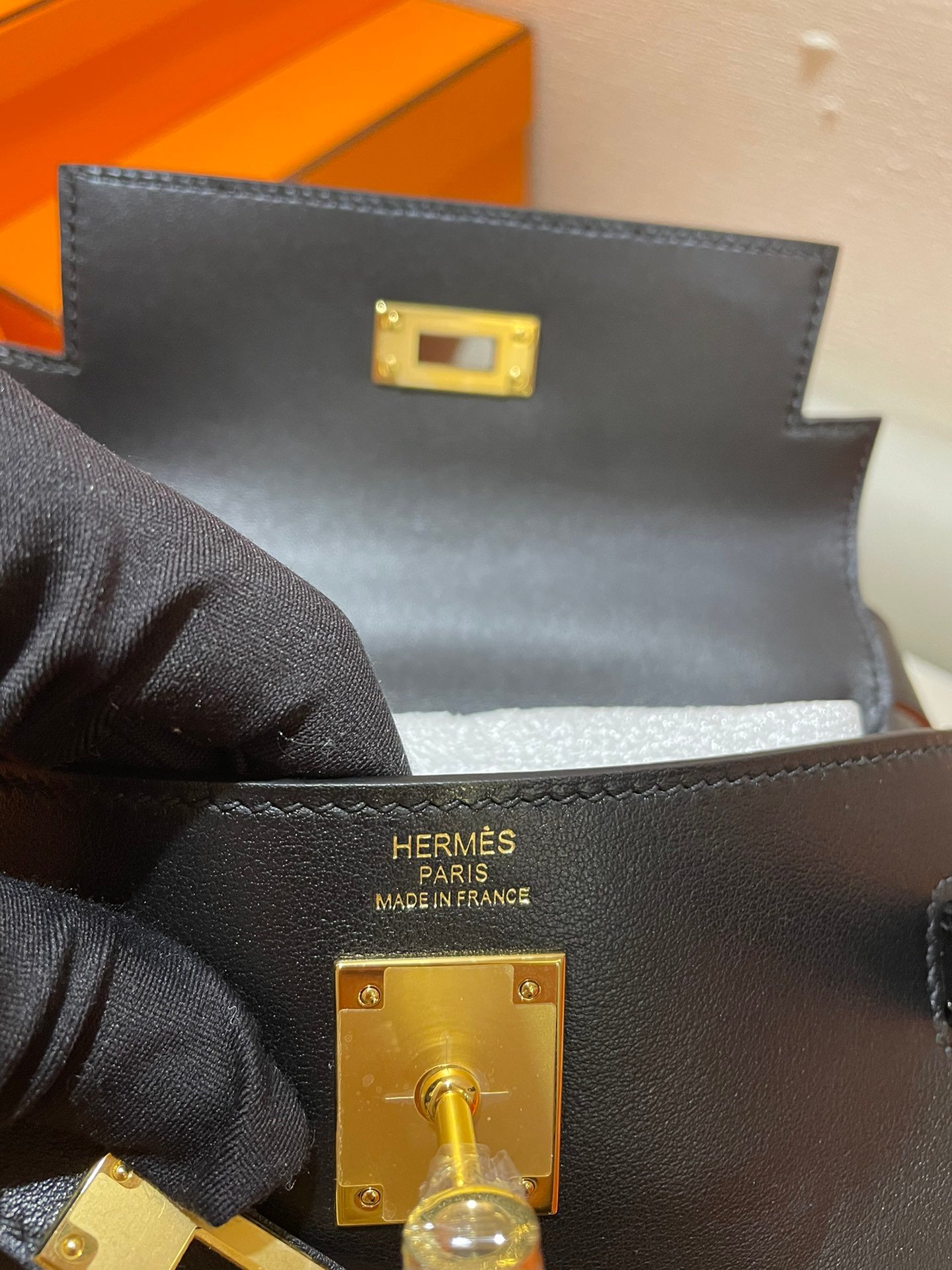 New Product Kelly Moove Dumpling Bun 17cm Original Imported Swift Leather [Black] Gold Button Counter synchronous manual wax thread sewing pure steel hardware high-end customization