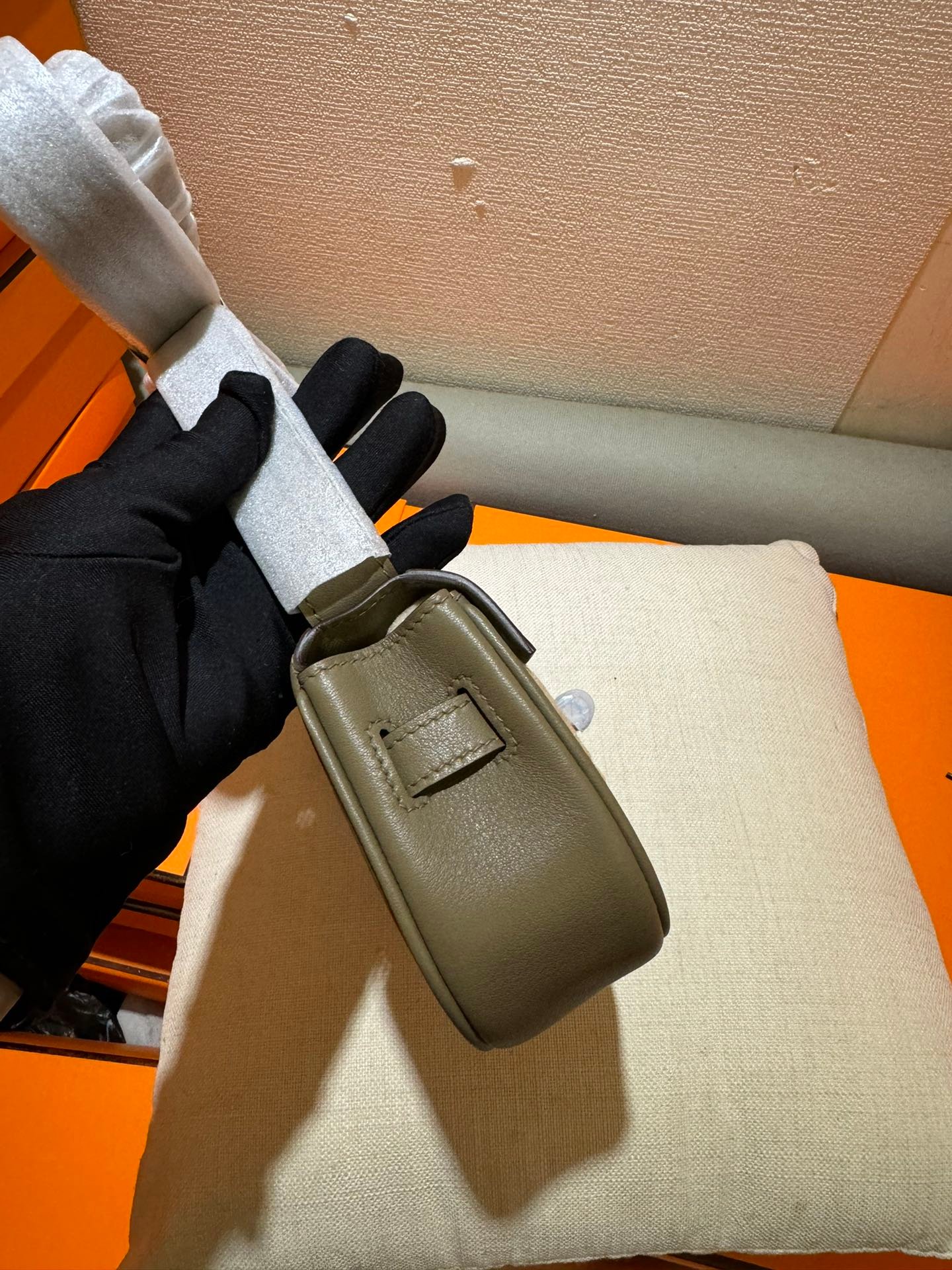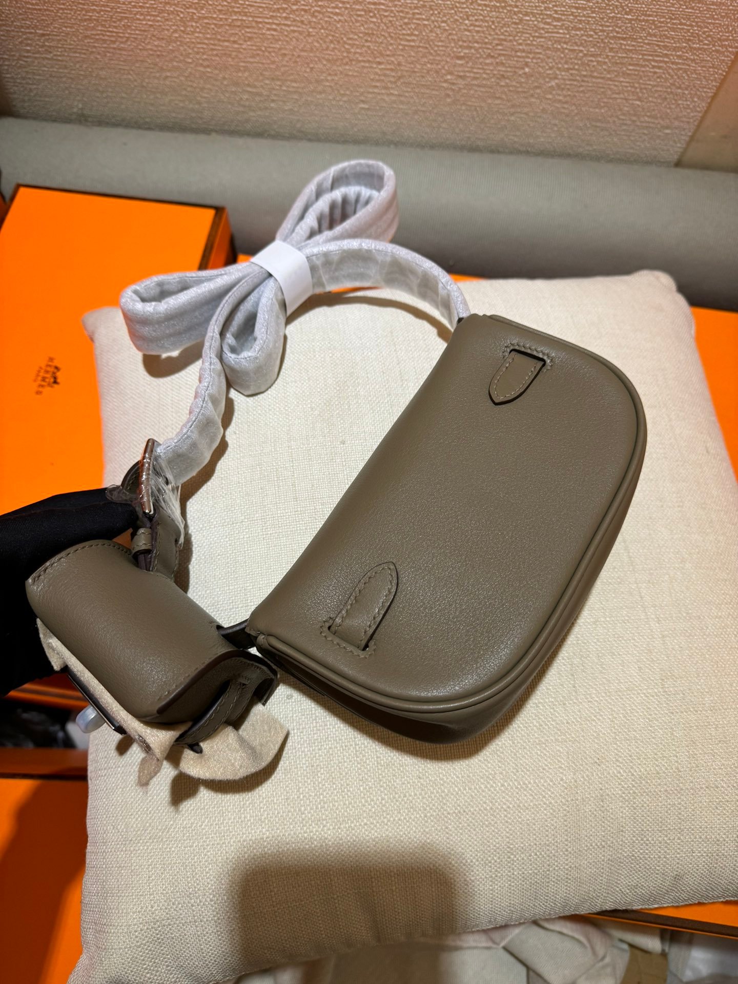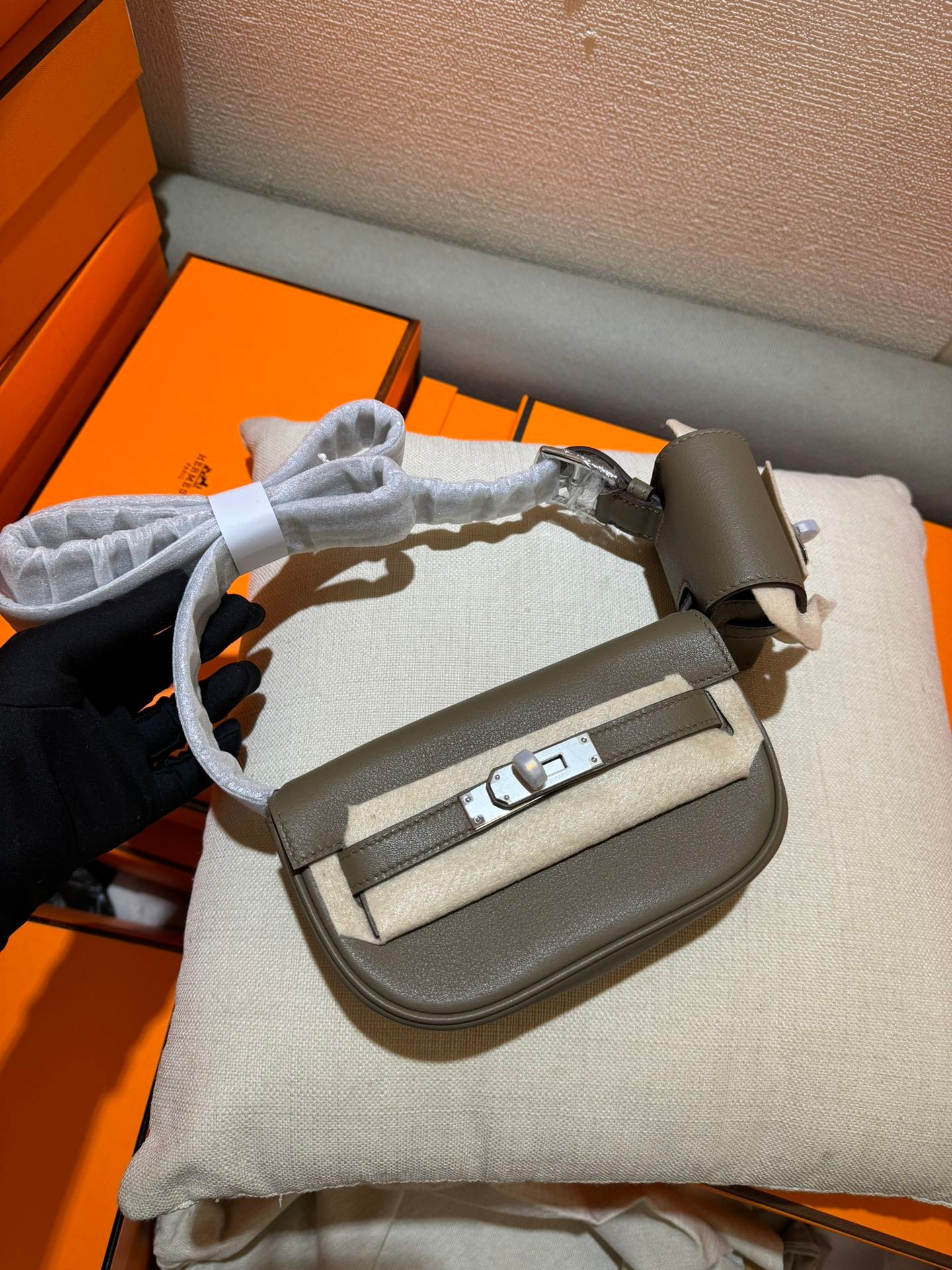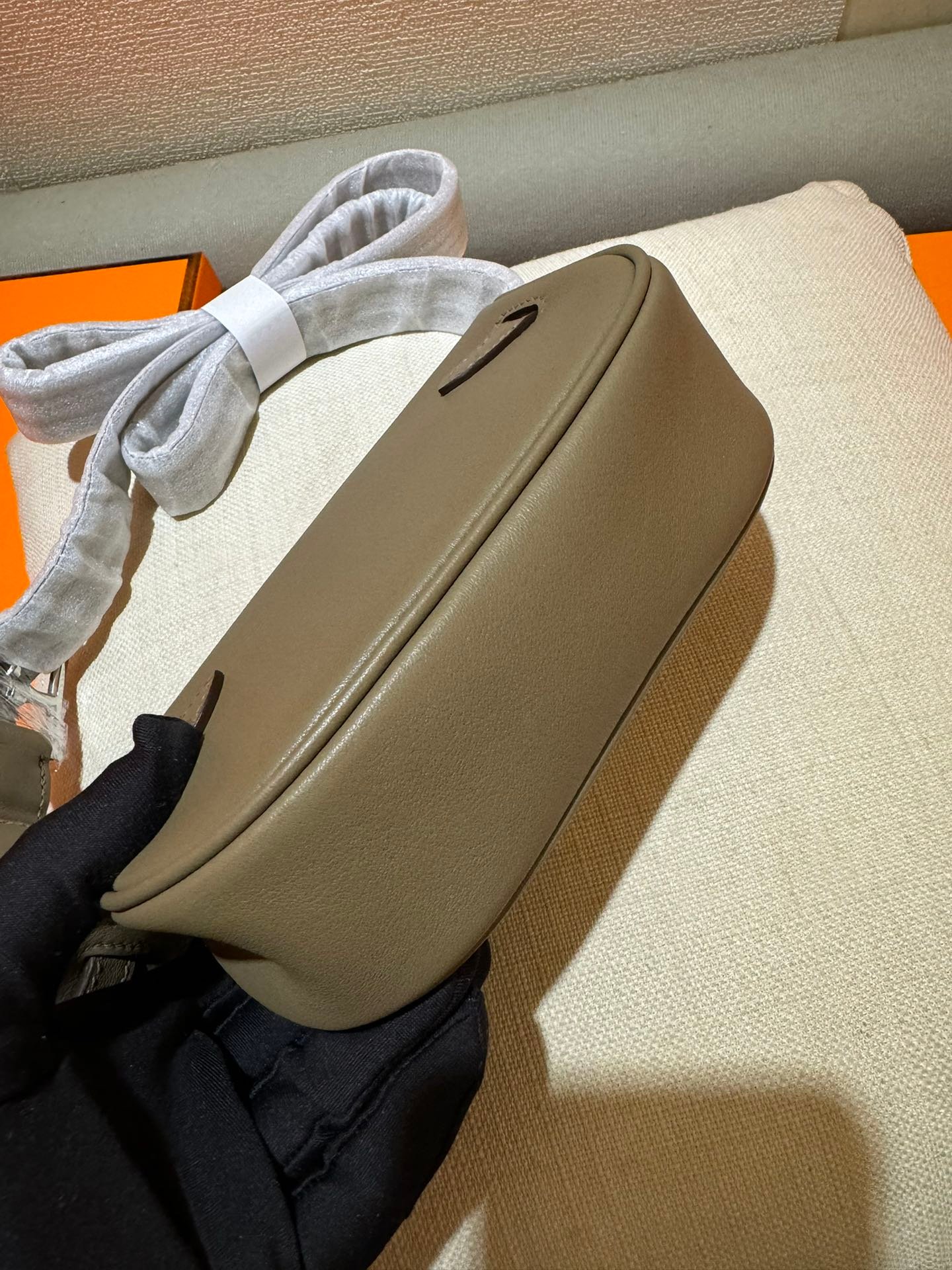 New Product Kelly Moove Dumpling Bun 17cm Original Imported Swift Leather [Tin Ash] Silver Button Counter synchronous manual wax thread sewing pure steel hardware high-end customization