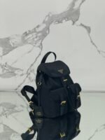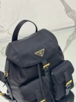 The most classic, best-selling, and versatile backpack from P family, lightweight and rainproof with moderate capacity, suitable for easy travel. Paired with imported parachute fabric – waterproof and sun resistant, front triangular enamel logo, cross pattern cowhide trim, drawstring inner bag+front two zippered outer bags meet the needs of exquisite storage.