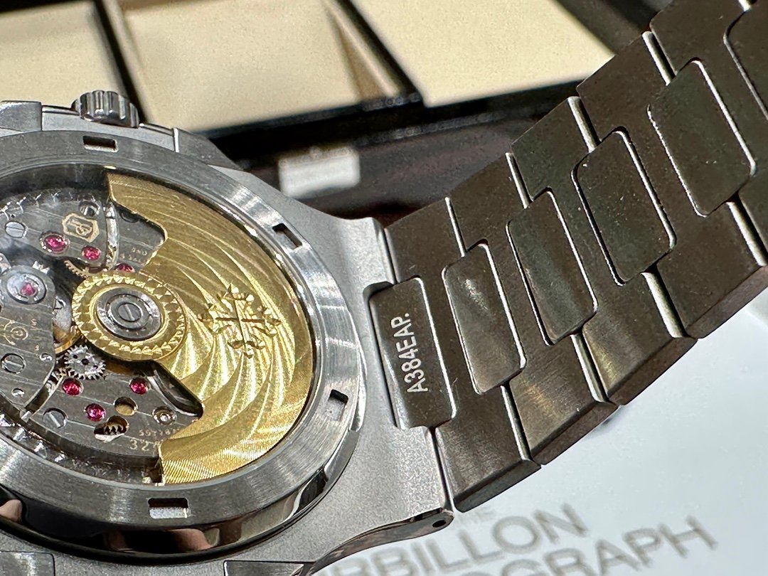 Through the sapphire back cover, the automatic winding movement can be seen, restoring the Patek Philippe Calibre 324 SC automatic movement with optimized performance, greater stability, and stronger power reserve.