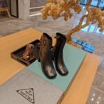 PRADA ² ⁰ ² 4 Prada new product (top-level packaging with the highest version), the strength is coming! Prada’s autumn and winter collection features a triangular emblem for the official use of the 7.5cm genuine round toe thick heel knight boots series: short boots