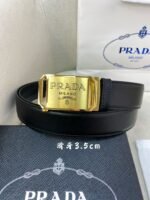 Prada Men’s Automatic Waist Belt – Width 35MM 316 Premium Steel Buckle Crafted with Exquisite Craftsmanship, Soft to Handle and Can Be Trimmed