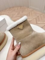The highest version of PRADA Prada’s new autumn/winter 24 △ triangle logo wool shoes on the market, thick soled boots, snow boots, two tone brushed cowhide, real lamb wool, leather edging, two tone TPU outsole material details can be compared with the original version, and the ordinary version on the market can be distinguished! Size: 35-39 (40/41 customized