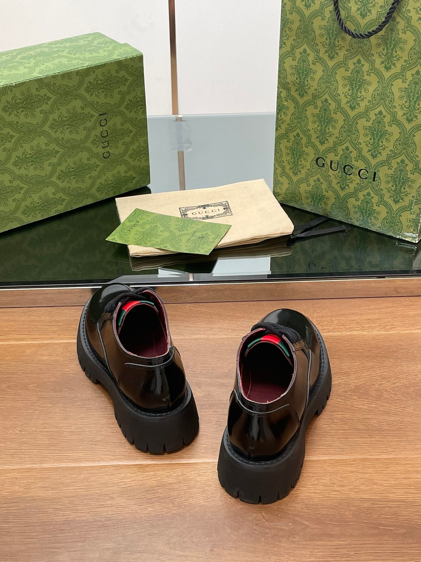 The latest GUCCI red and green ribbon tied thick soled loafers for autumn and winter 2024, new autumn shoes, deep mouth single shoes, purchasing high-end boutique goods