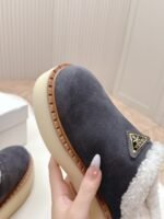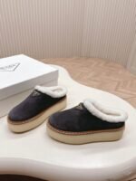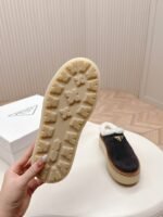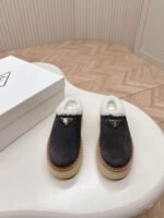 The latest series! High end Prada 2024 autumn and winter new fur thick soled slippers triangular buckle bag head and half slippers latest fashion show series classic upgrade, comfort and fashion coexist, each color matching looks good, design matching different style requirements original mold latest thick soled, all leather edging Shoe upper: Original customized cowhide Inside: Cake wool Bottom: Original mold opening anti slip bottom Shoe size: 35-40